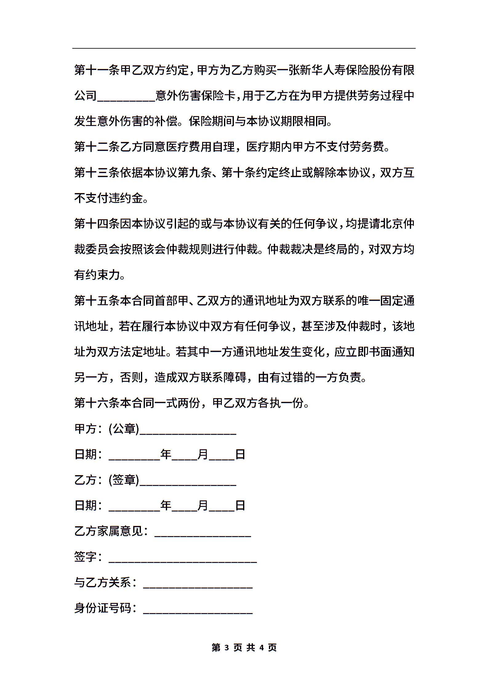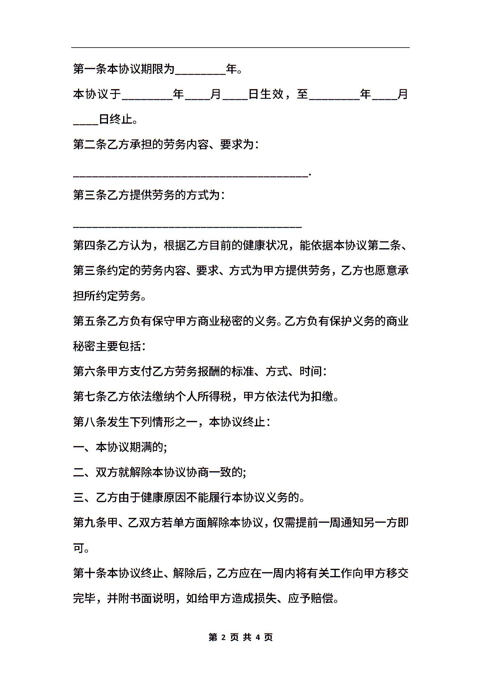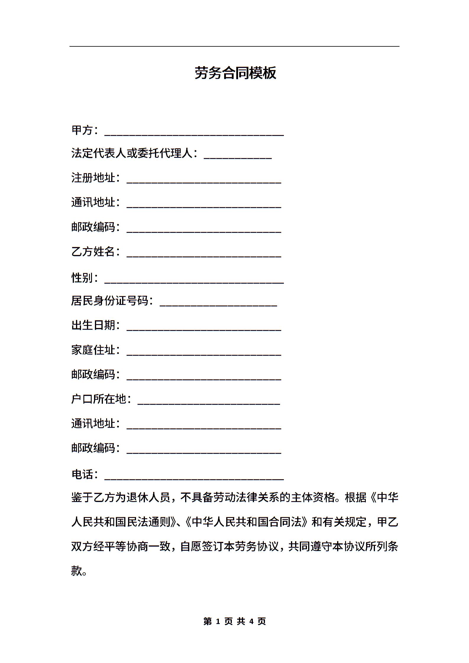 劳务合同模板