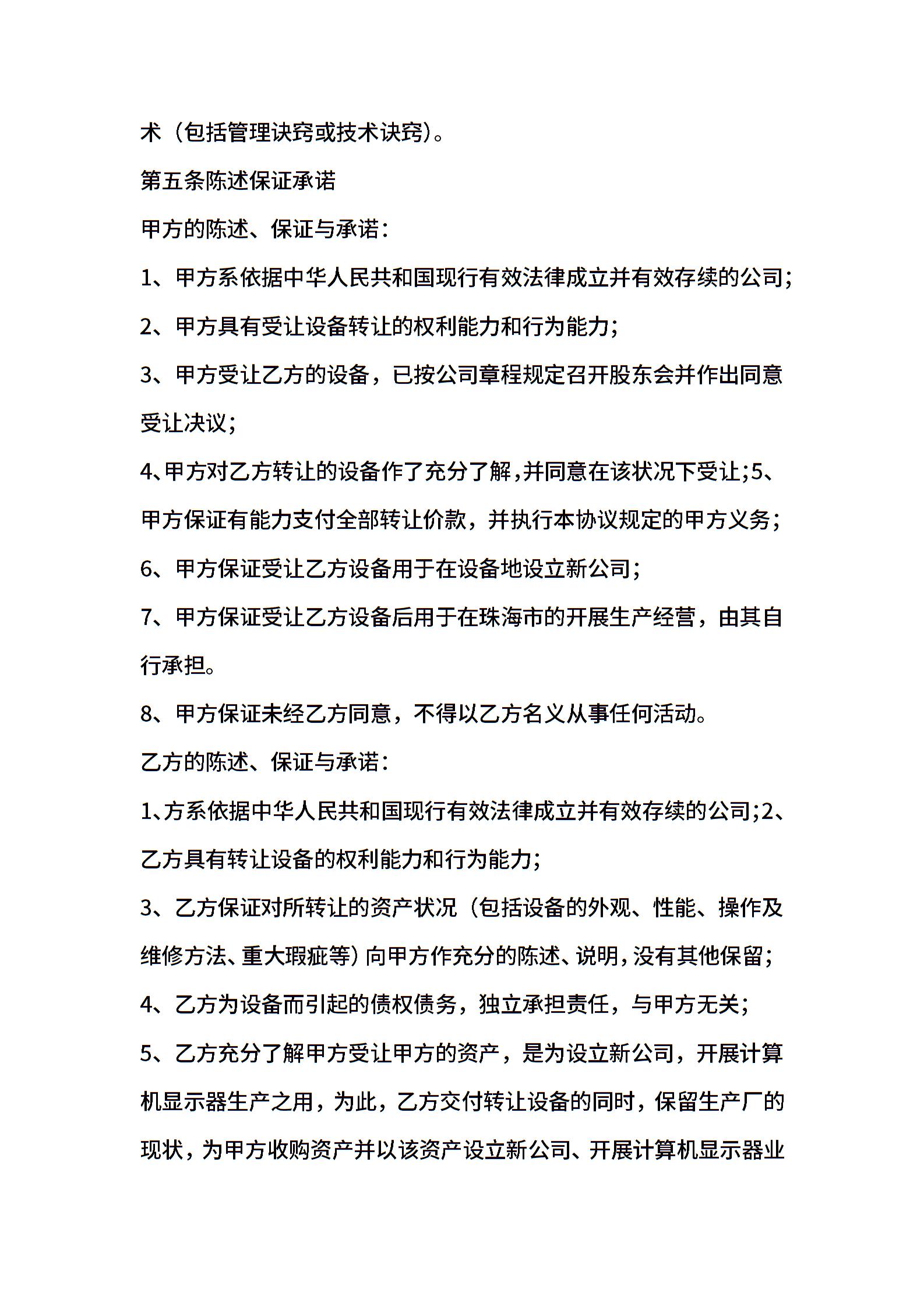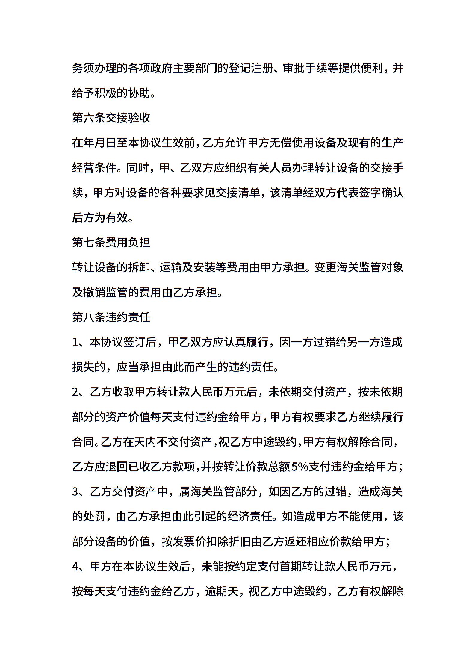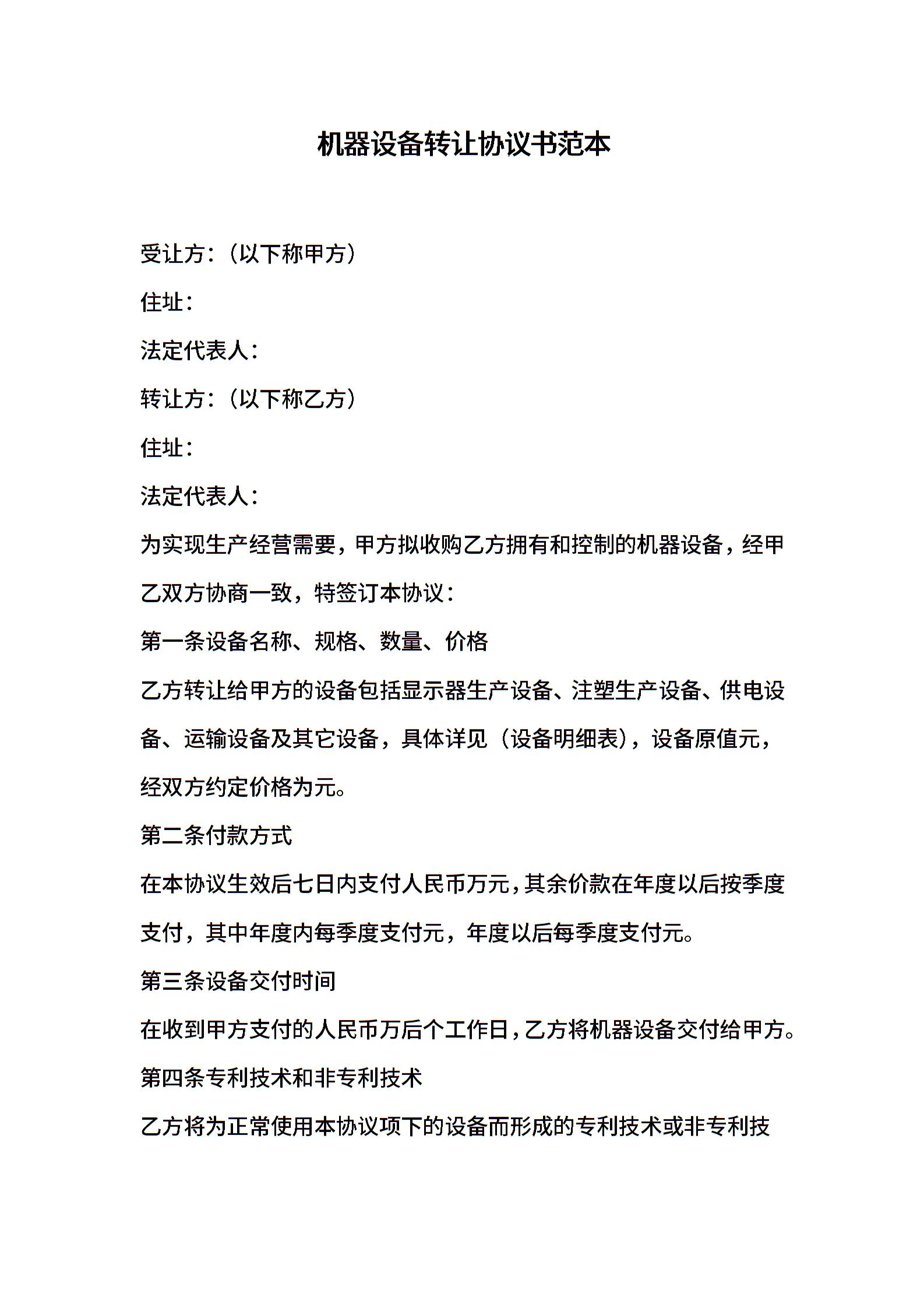 机器设备转让协议书范本