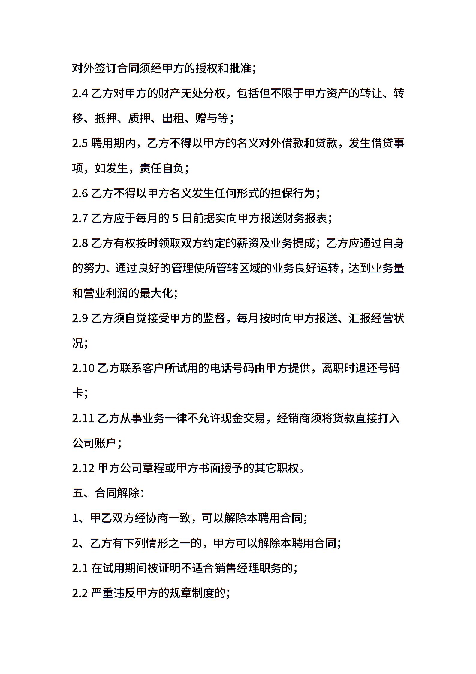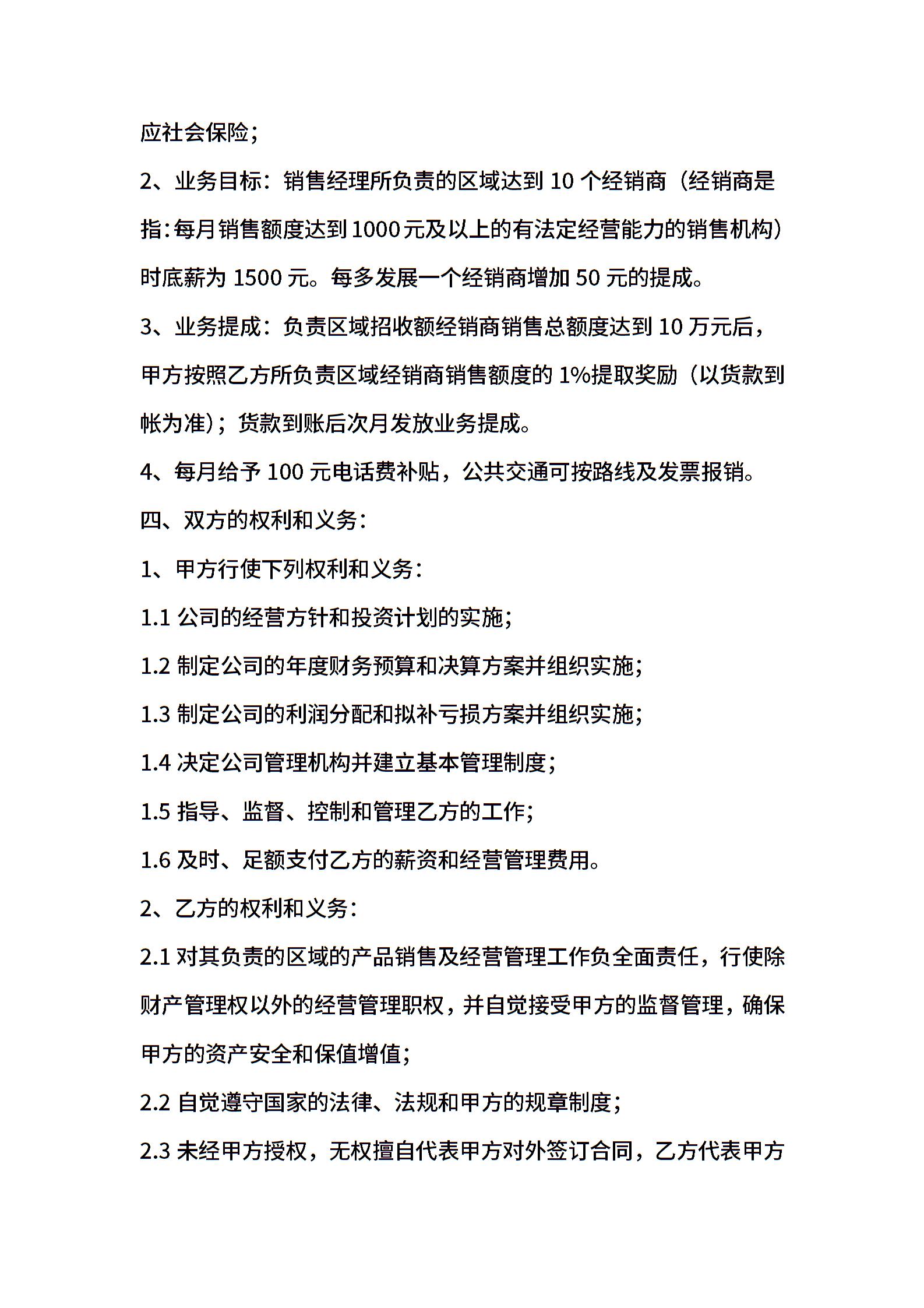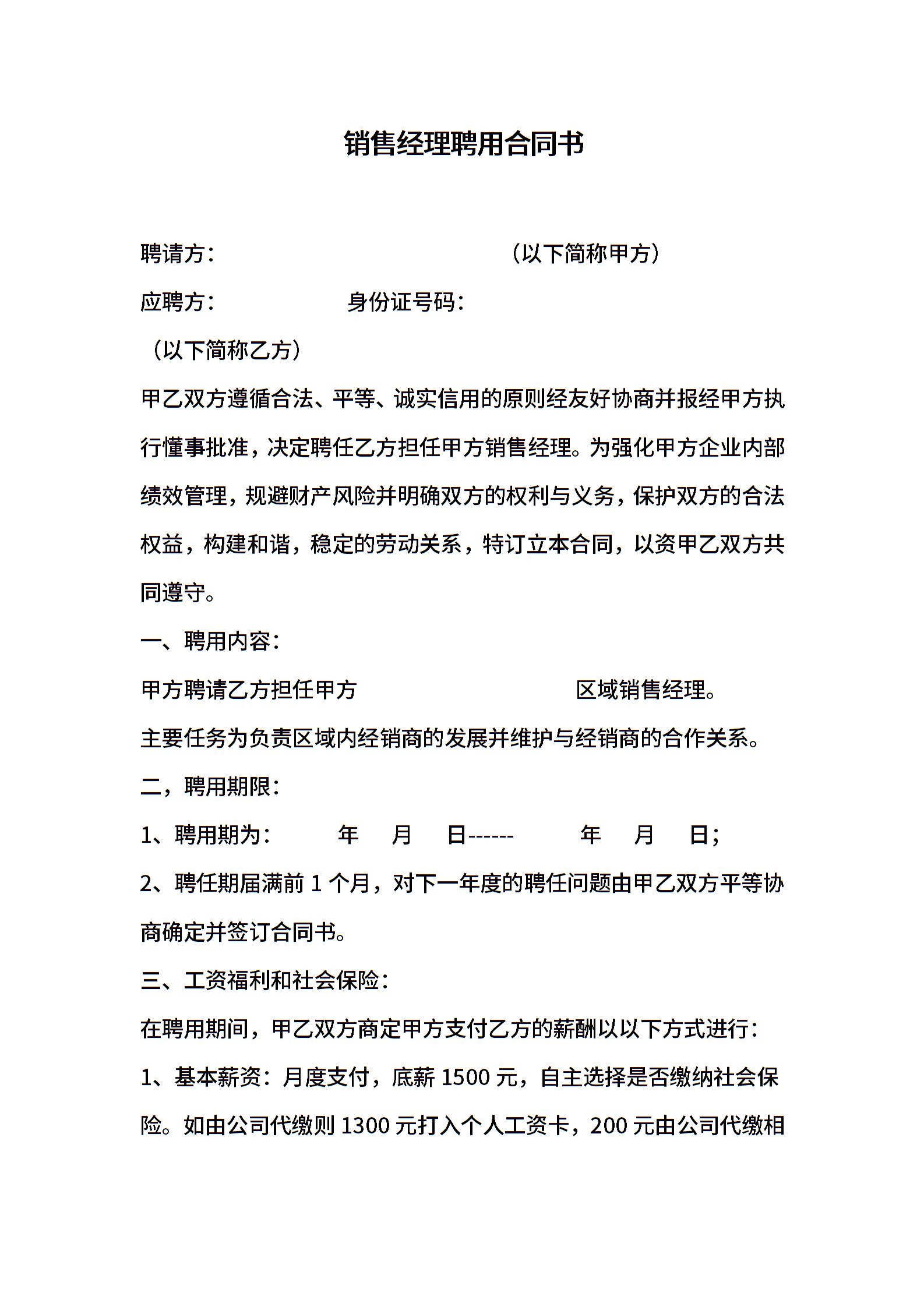 区域销售经理聘用合同书