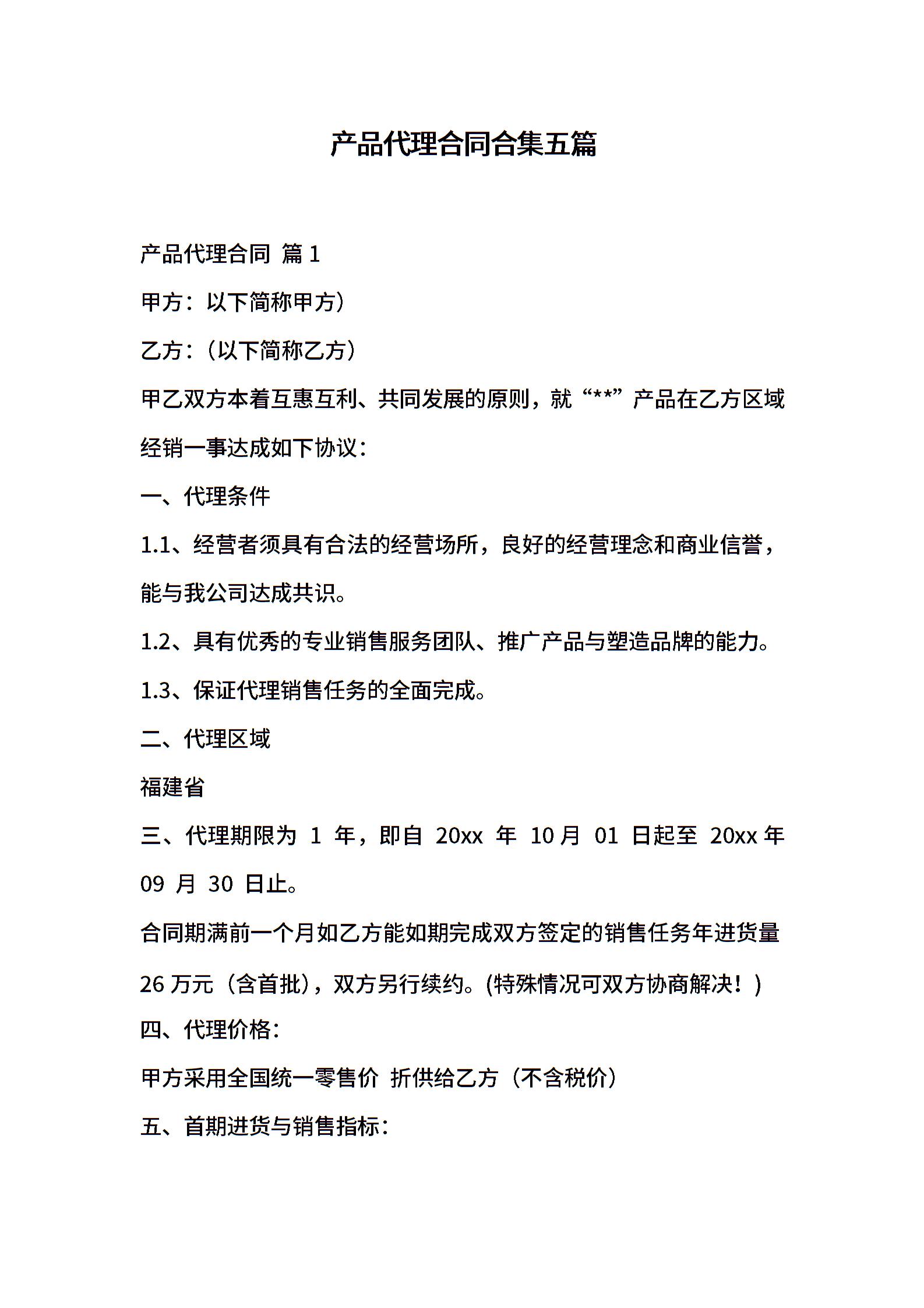 产品代理合同合集五篇