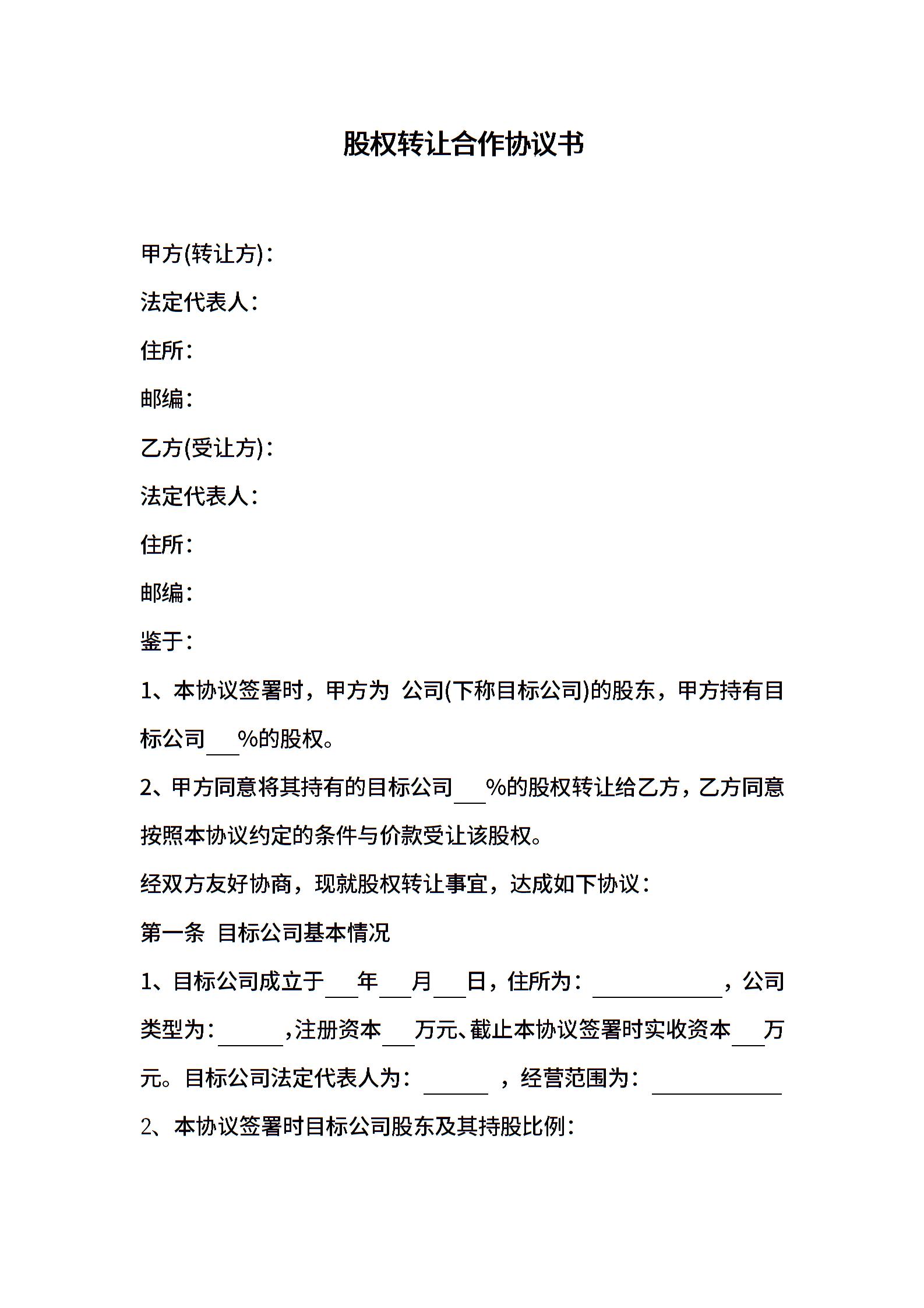 股权转让合作协议书
