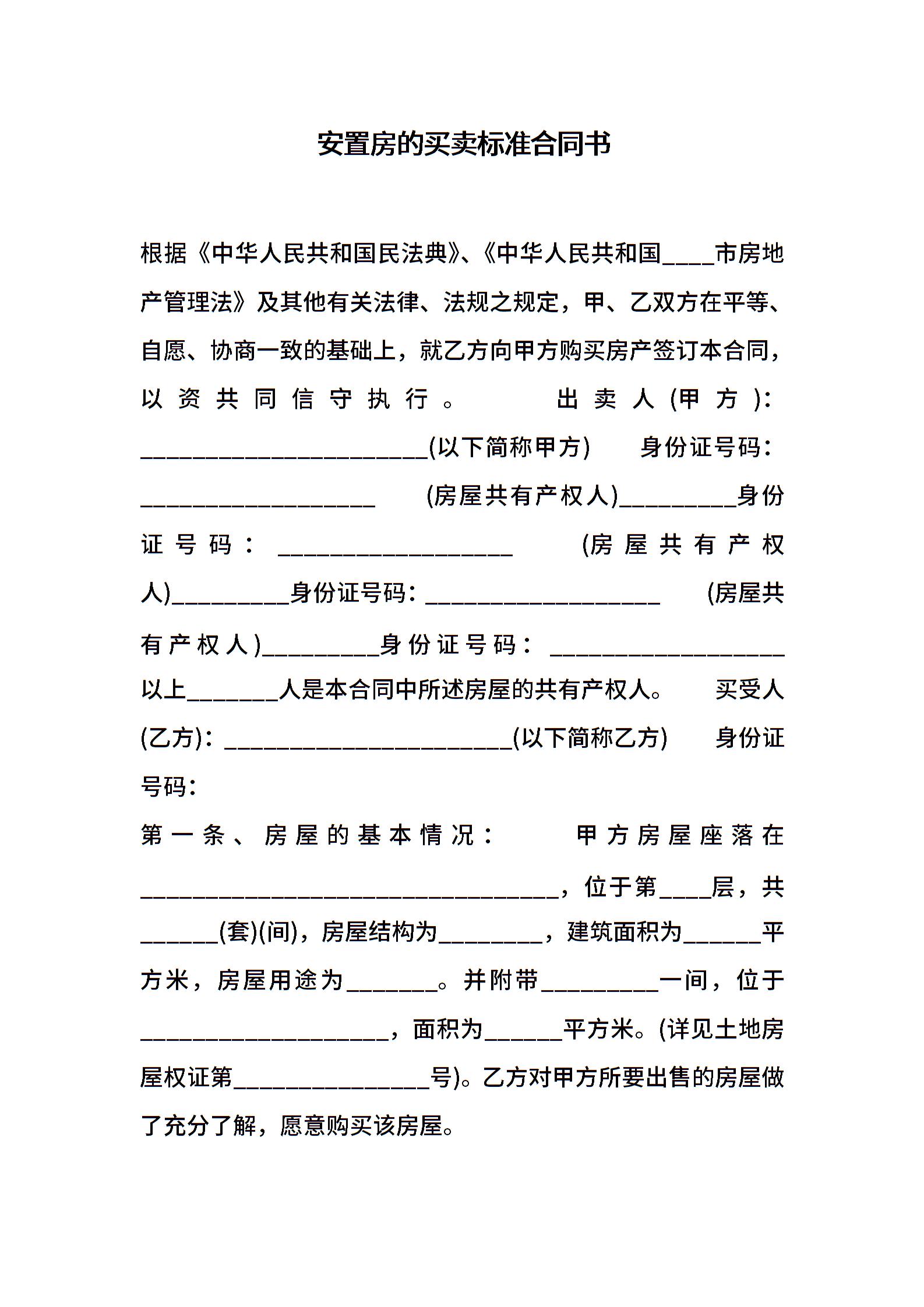 安置房的买卖标准合同书