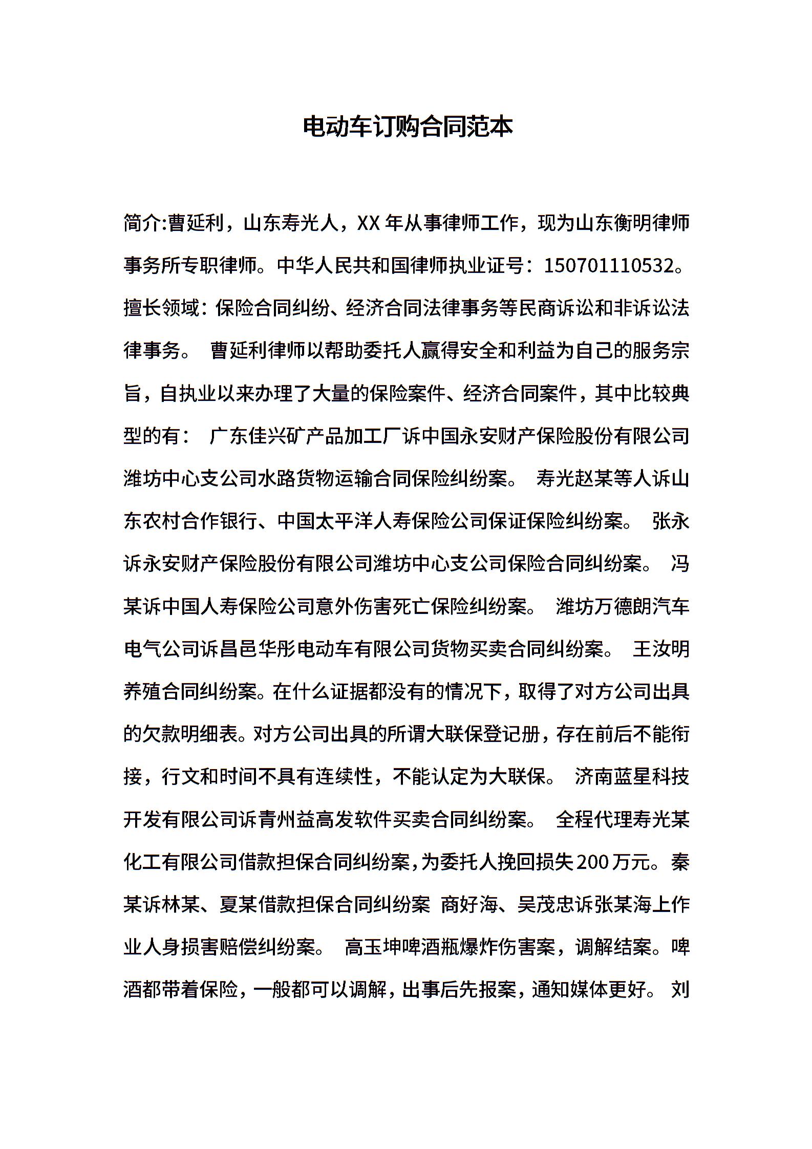 电动车订购合同范本