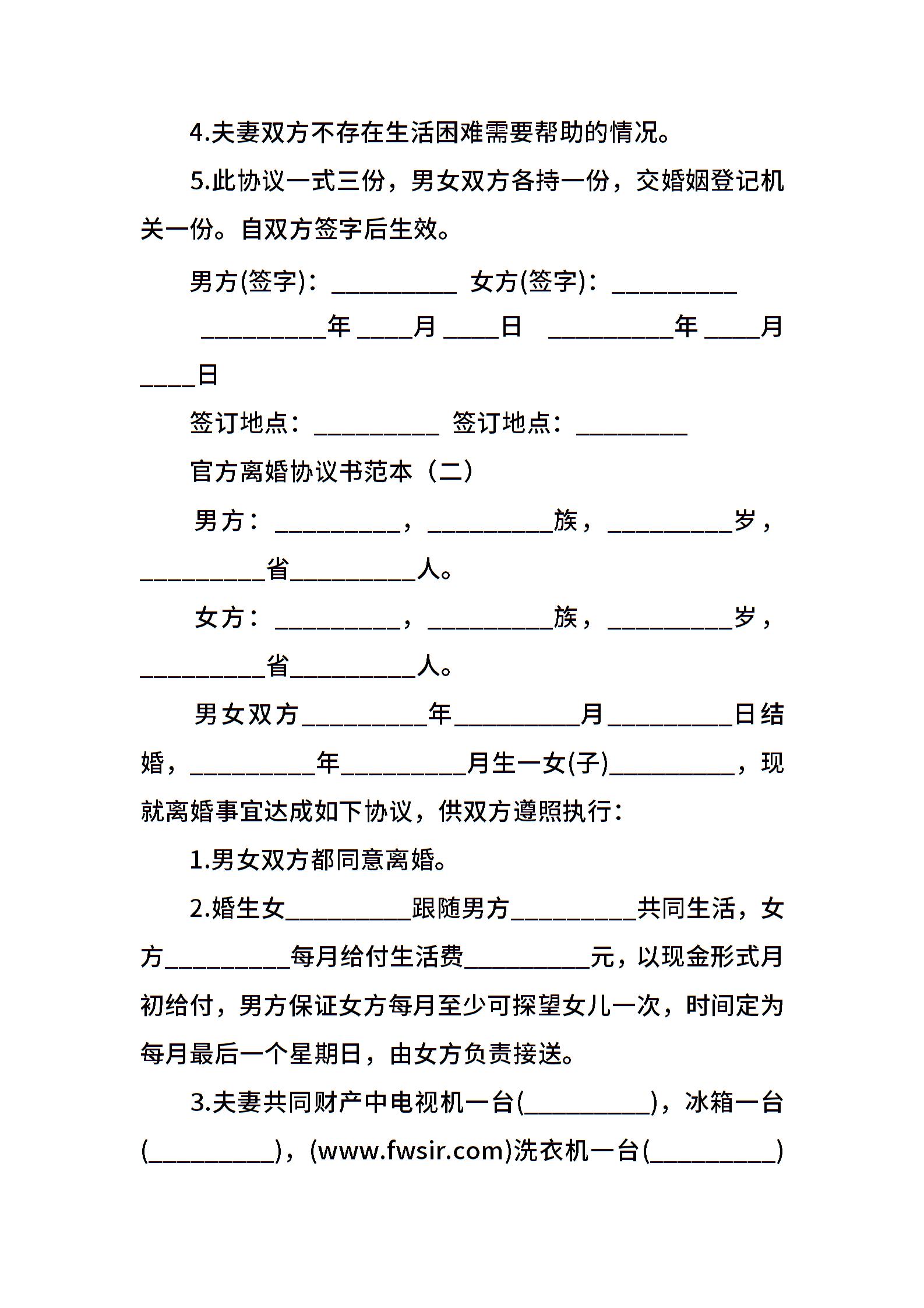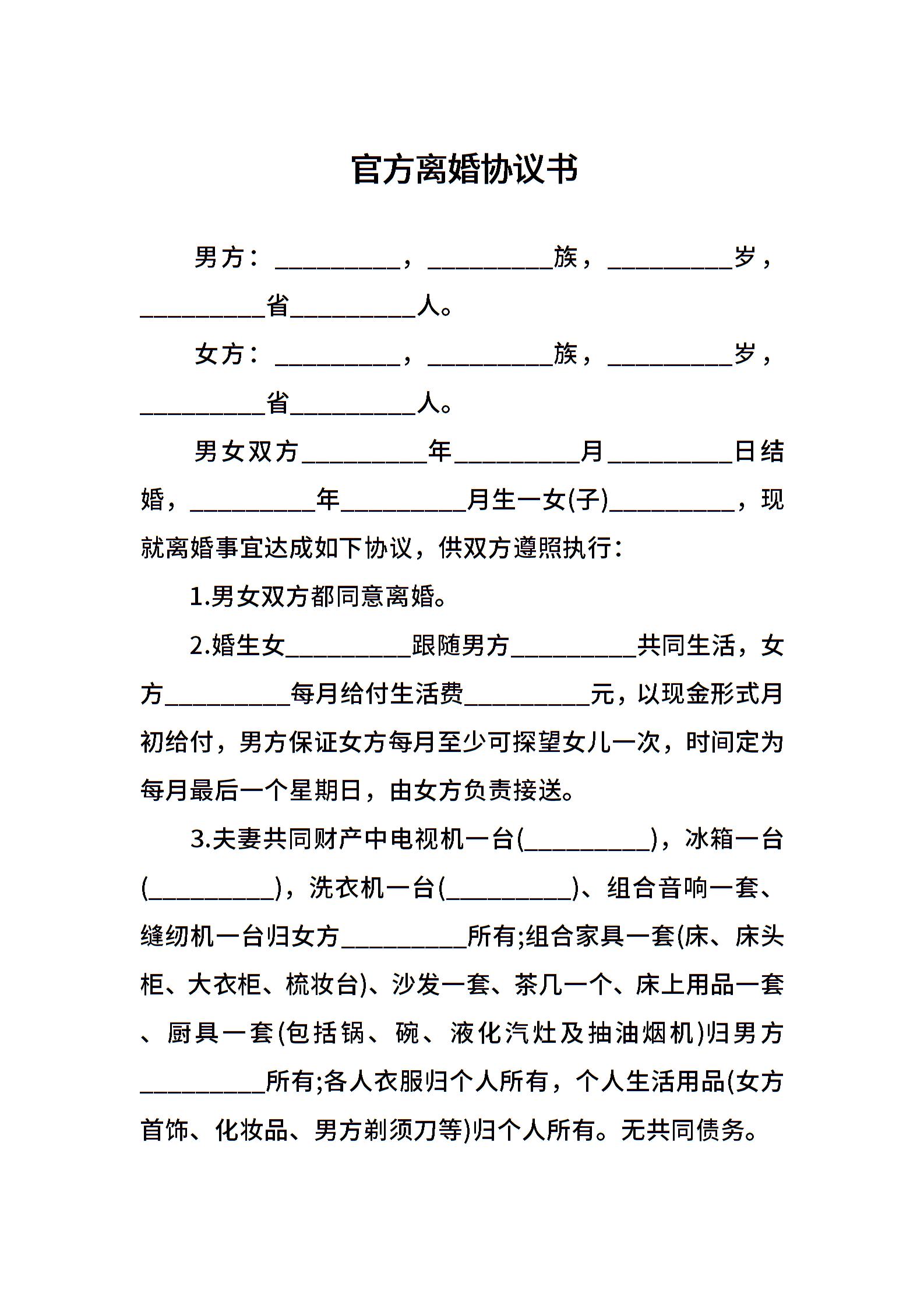 官方离婚协议书