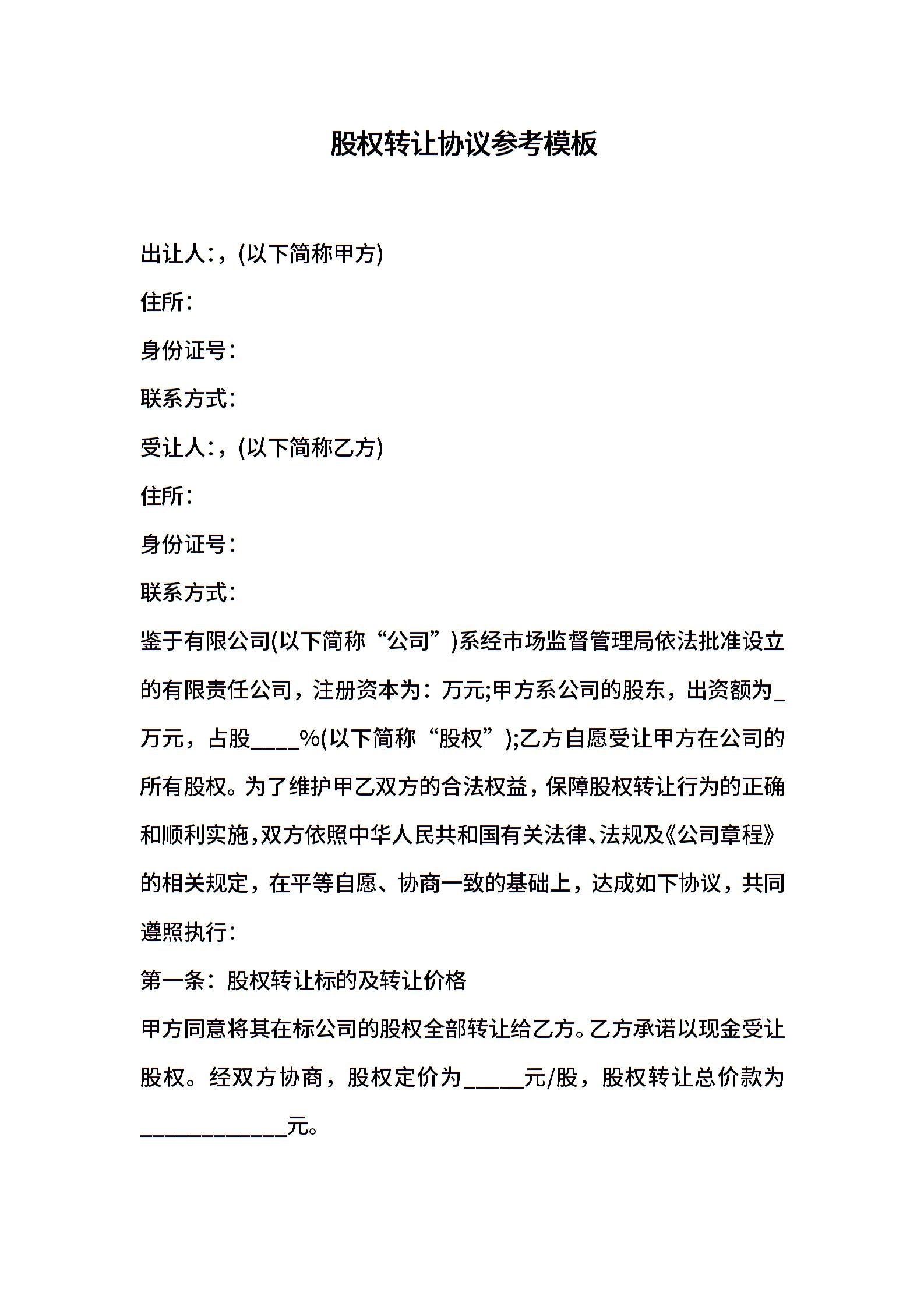 当前位置:量子办公 > 合同模板 > 股权转让协议 >