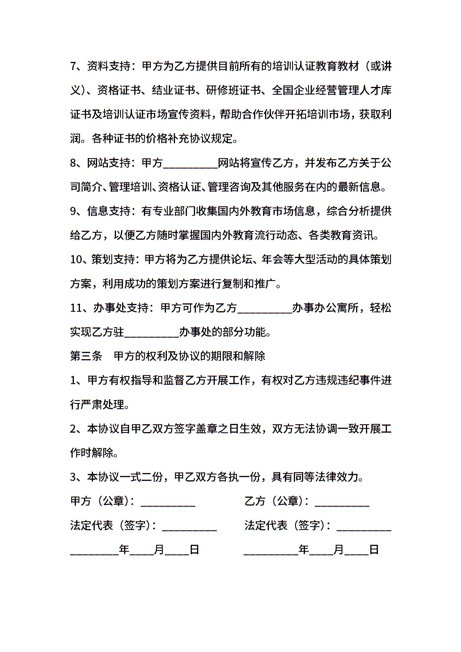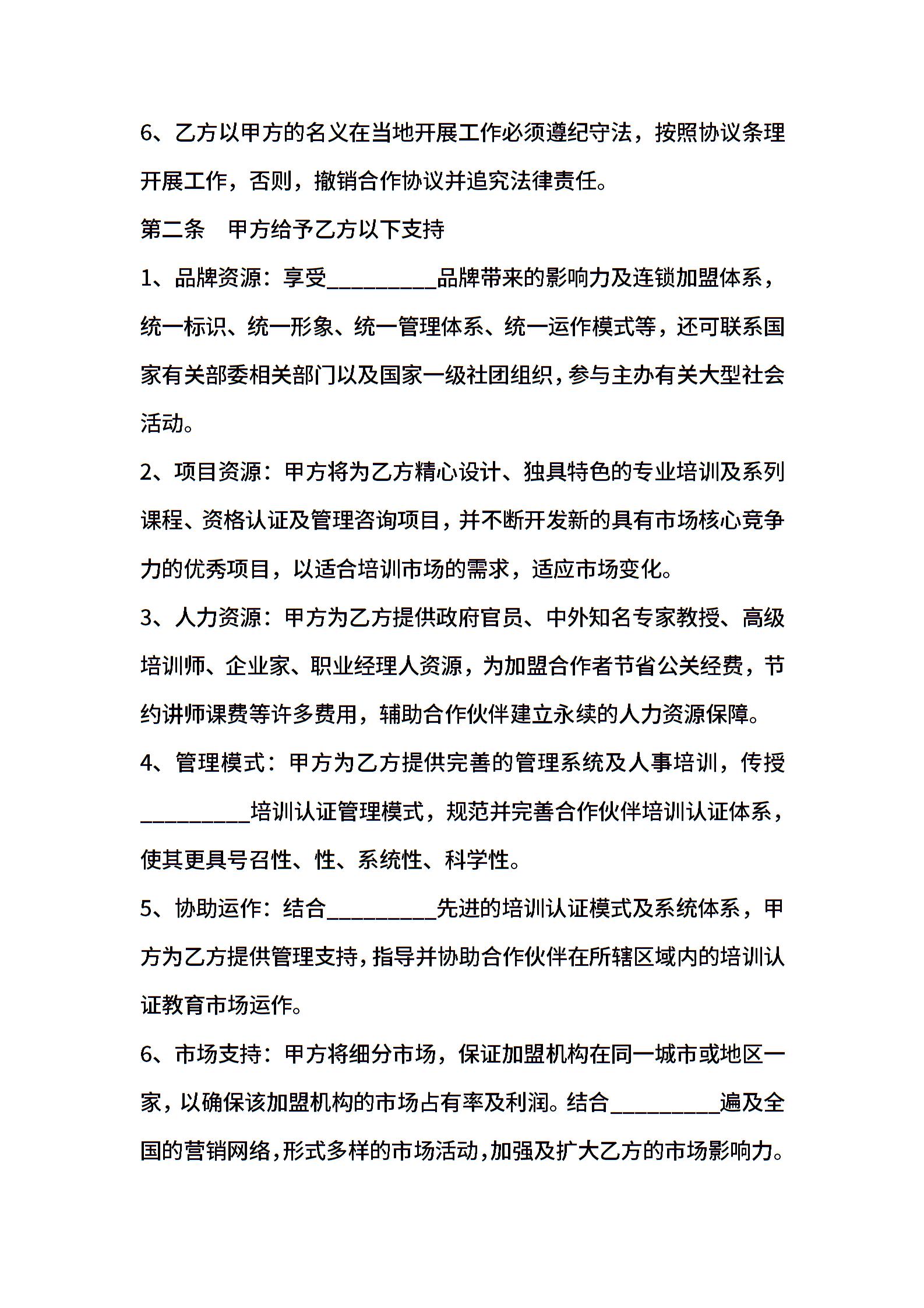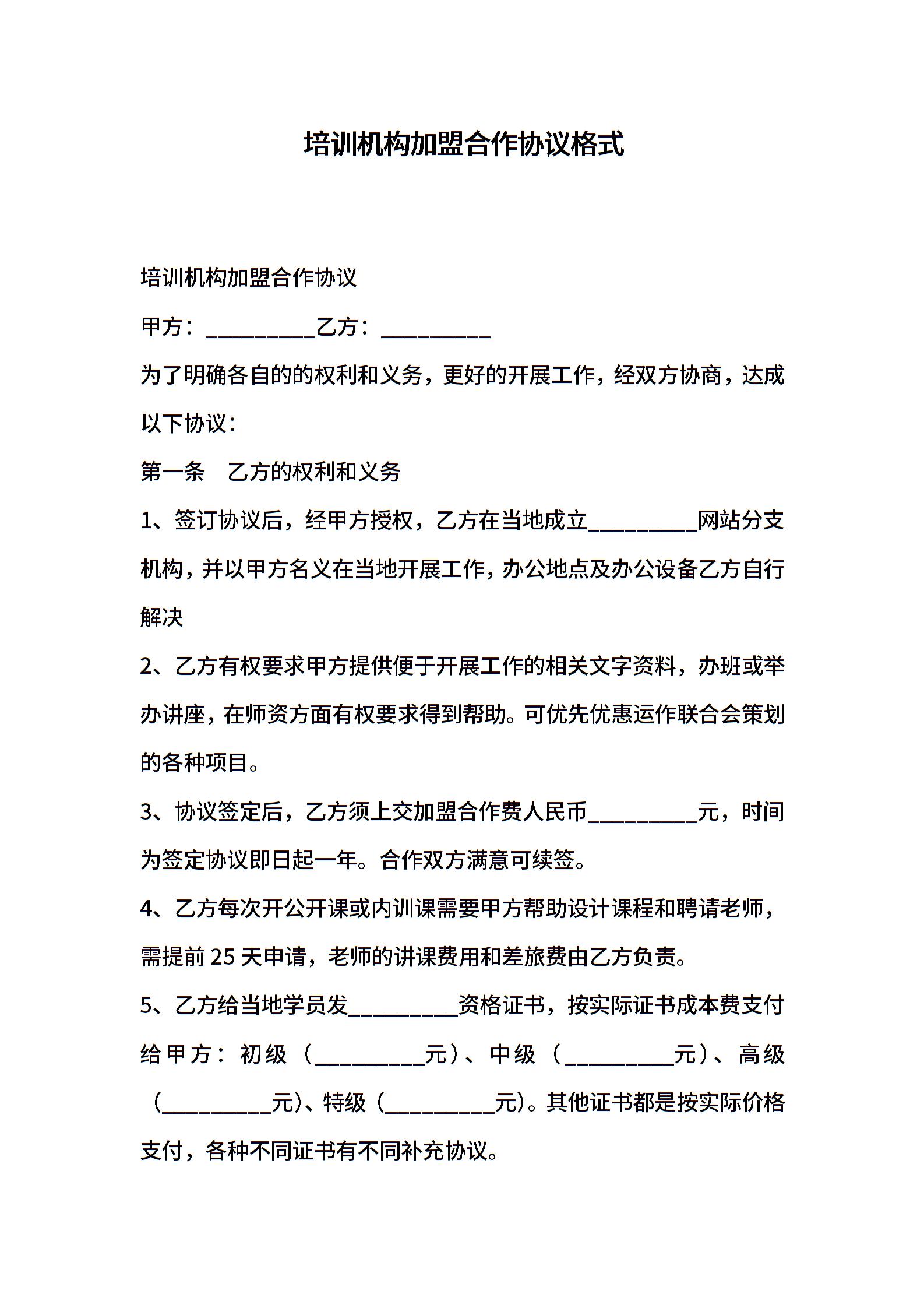 培训机构加盟合作协议格式