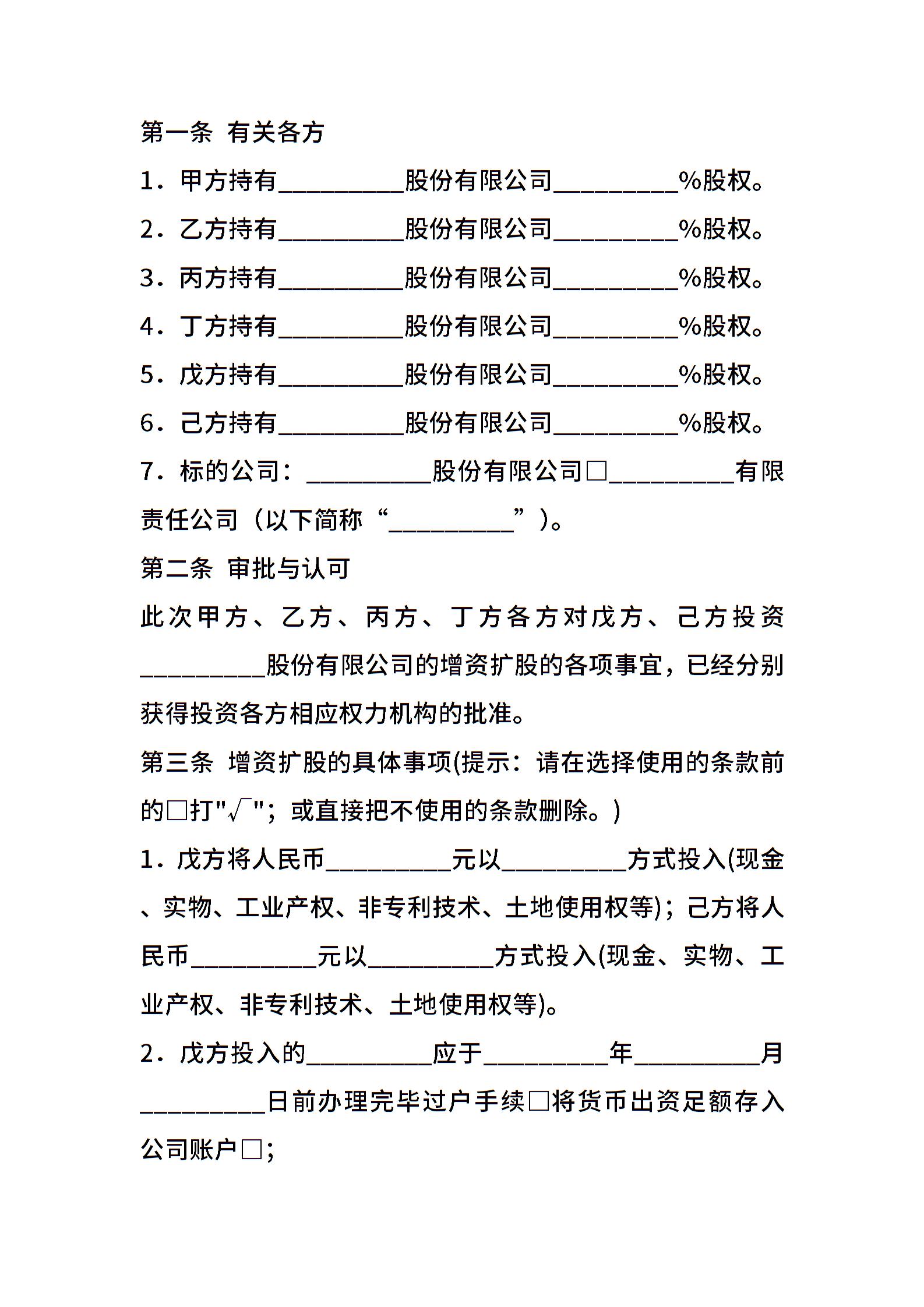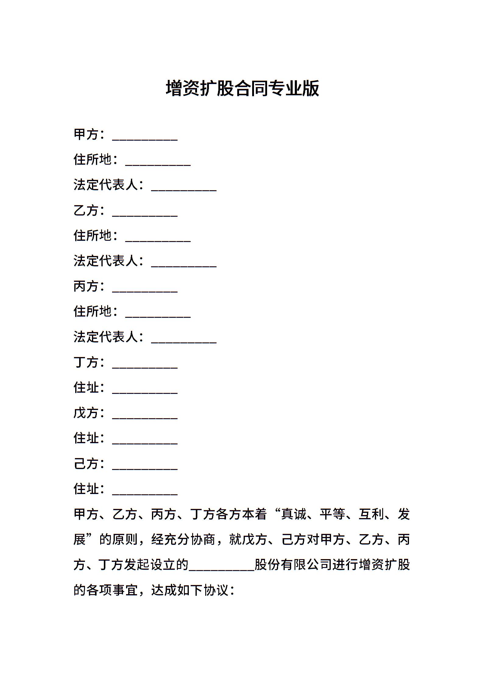 增资扩股合同专业版