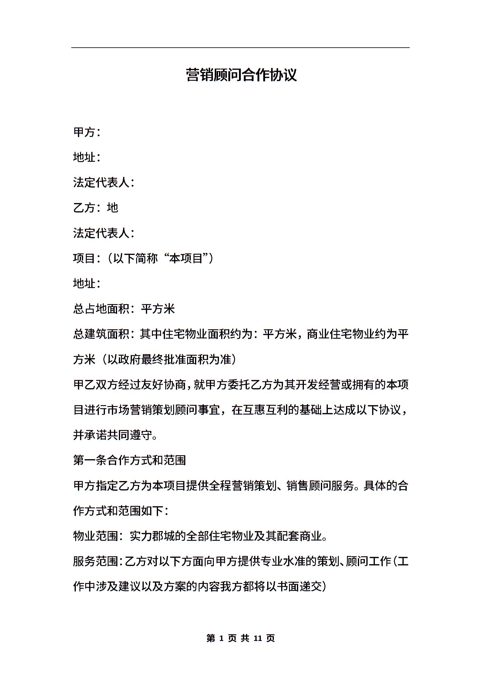 营销顾问合作协议