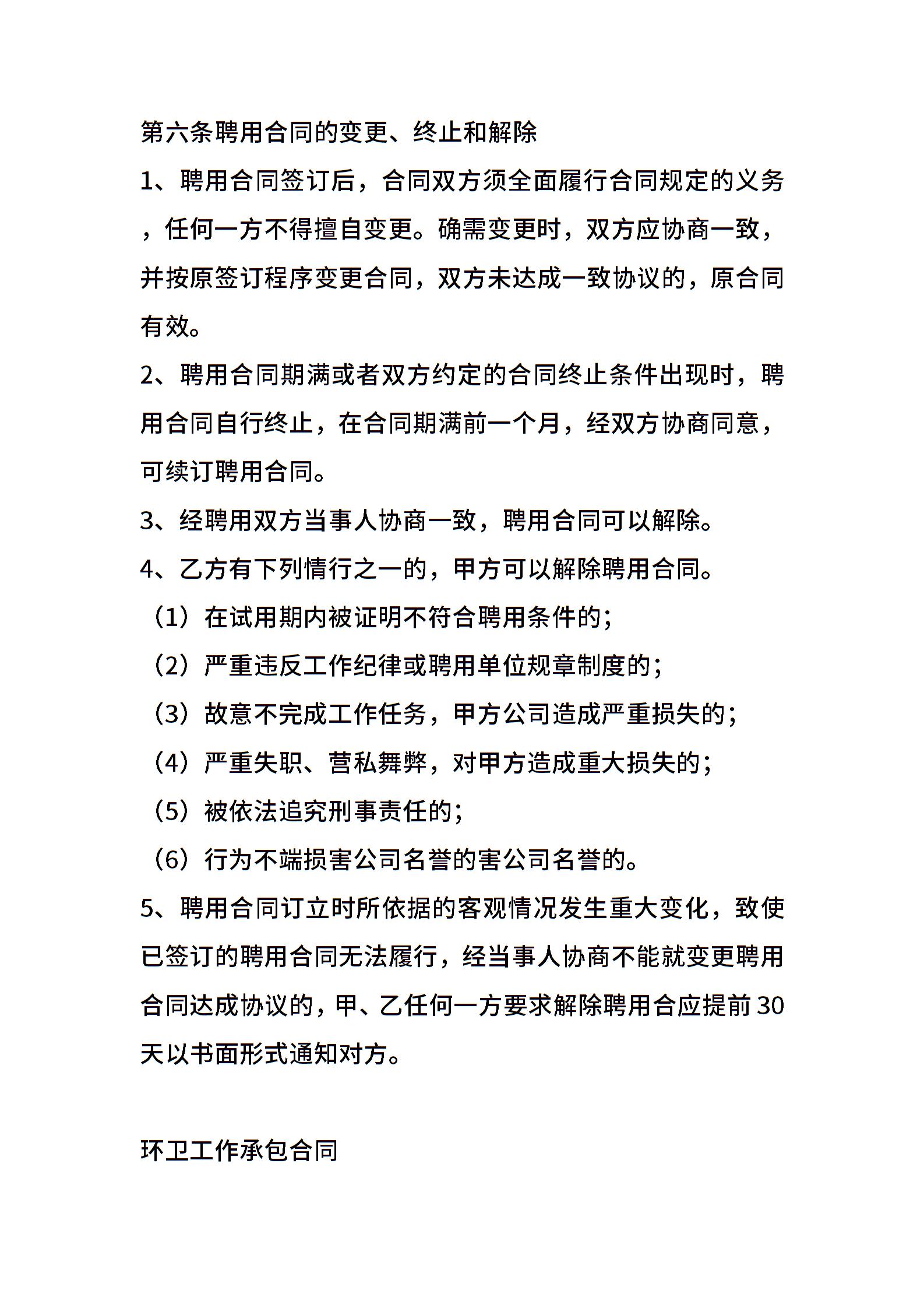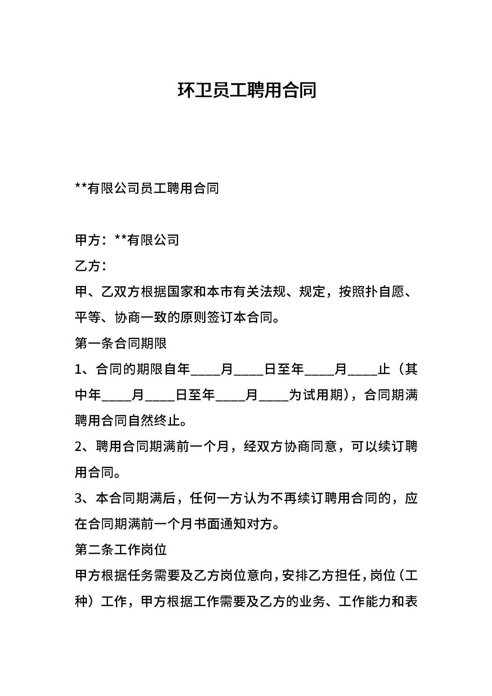 环卫员工聘用合同