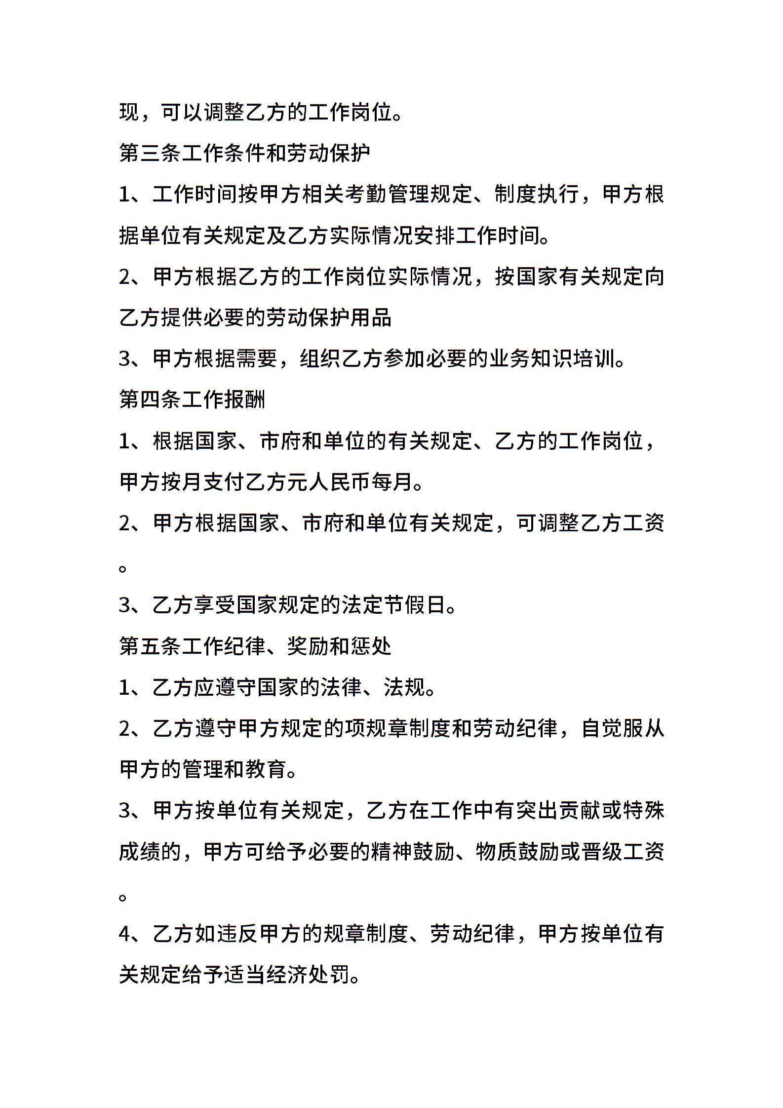 • 分类 聘用合同