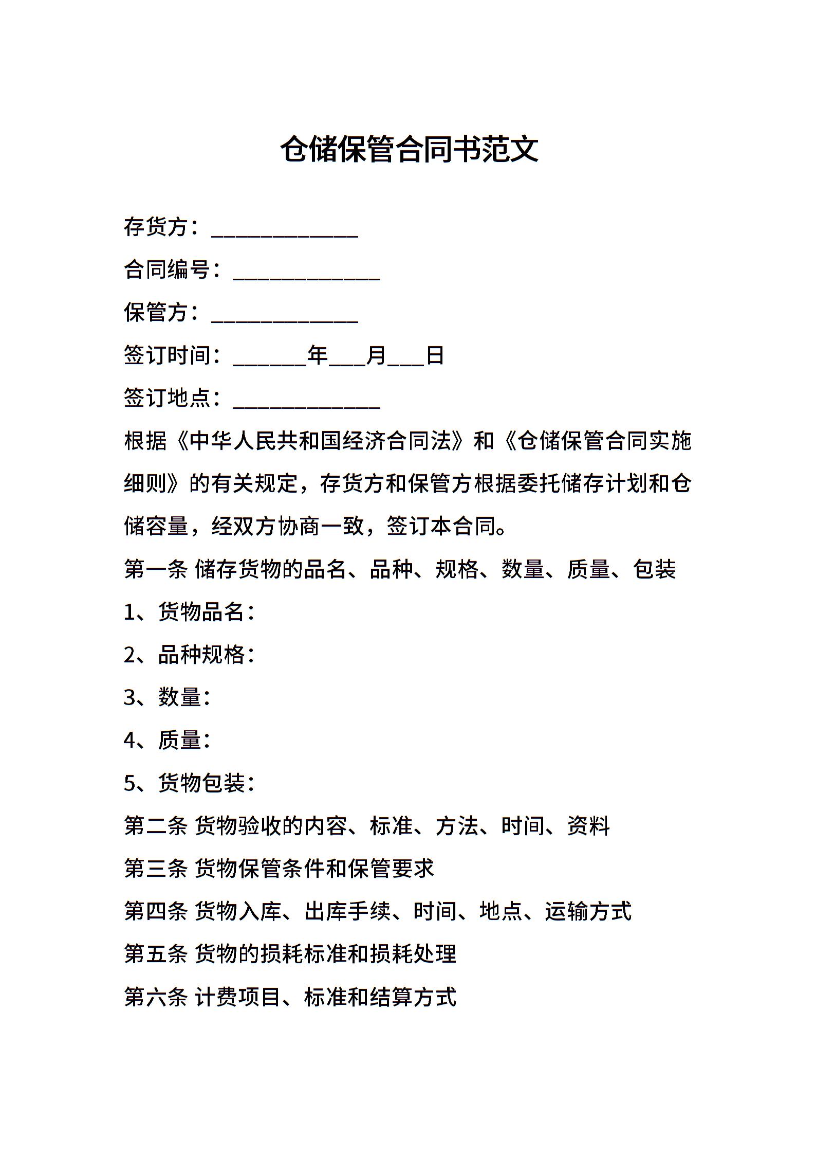 当前位置:量子办公 > 合同模板 > 保管合同 >
