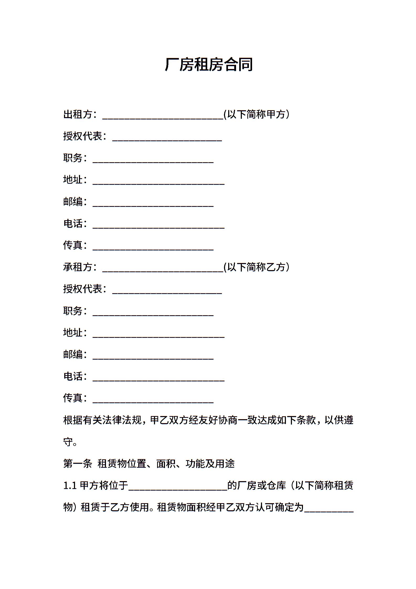 厂房租房合同 (2)