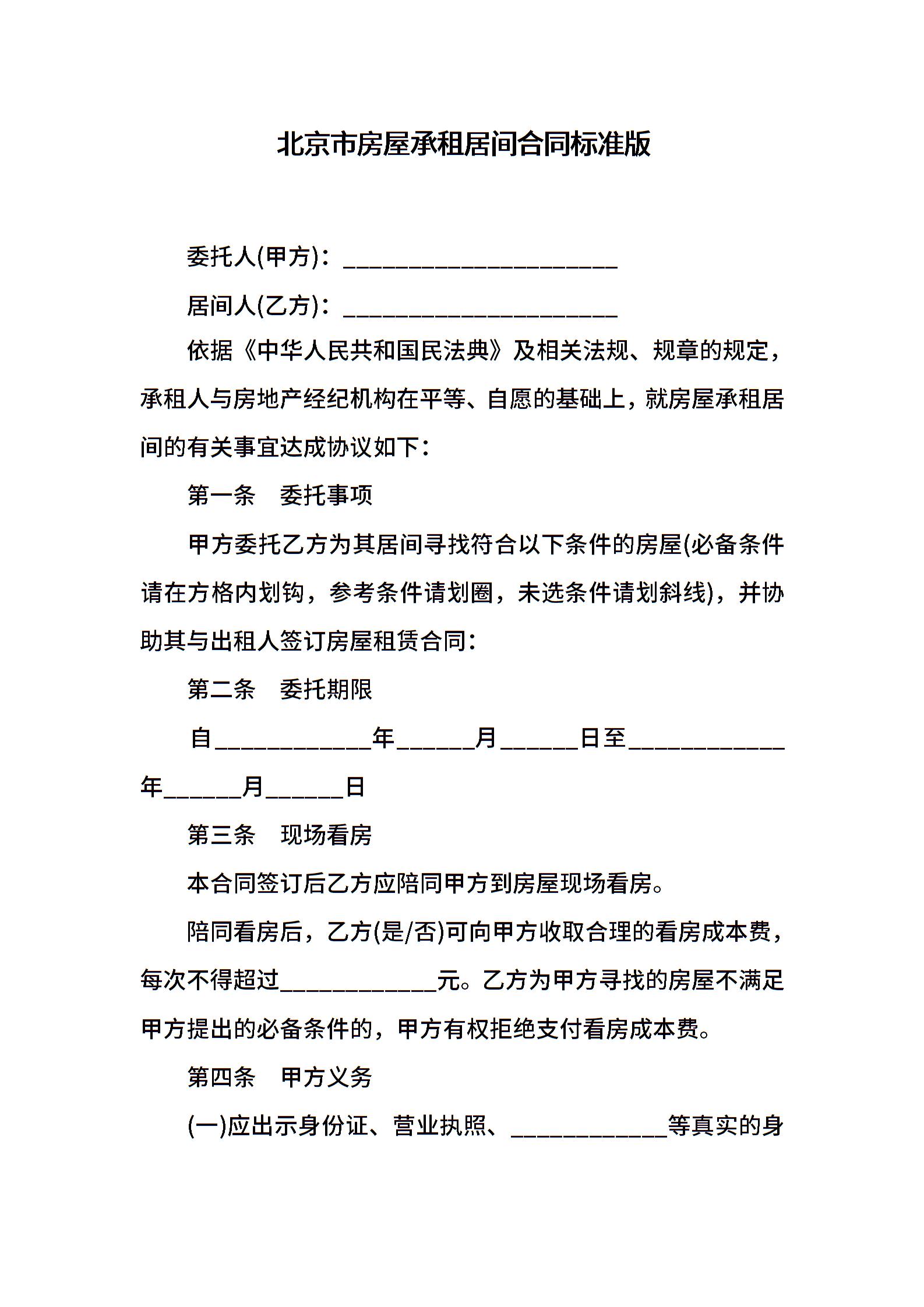 北京市房屋承租居间合同标准版