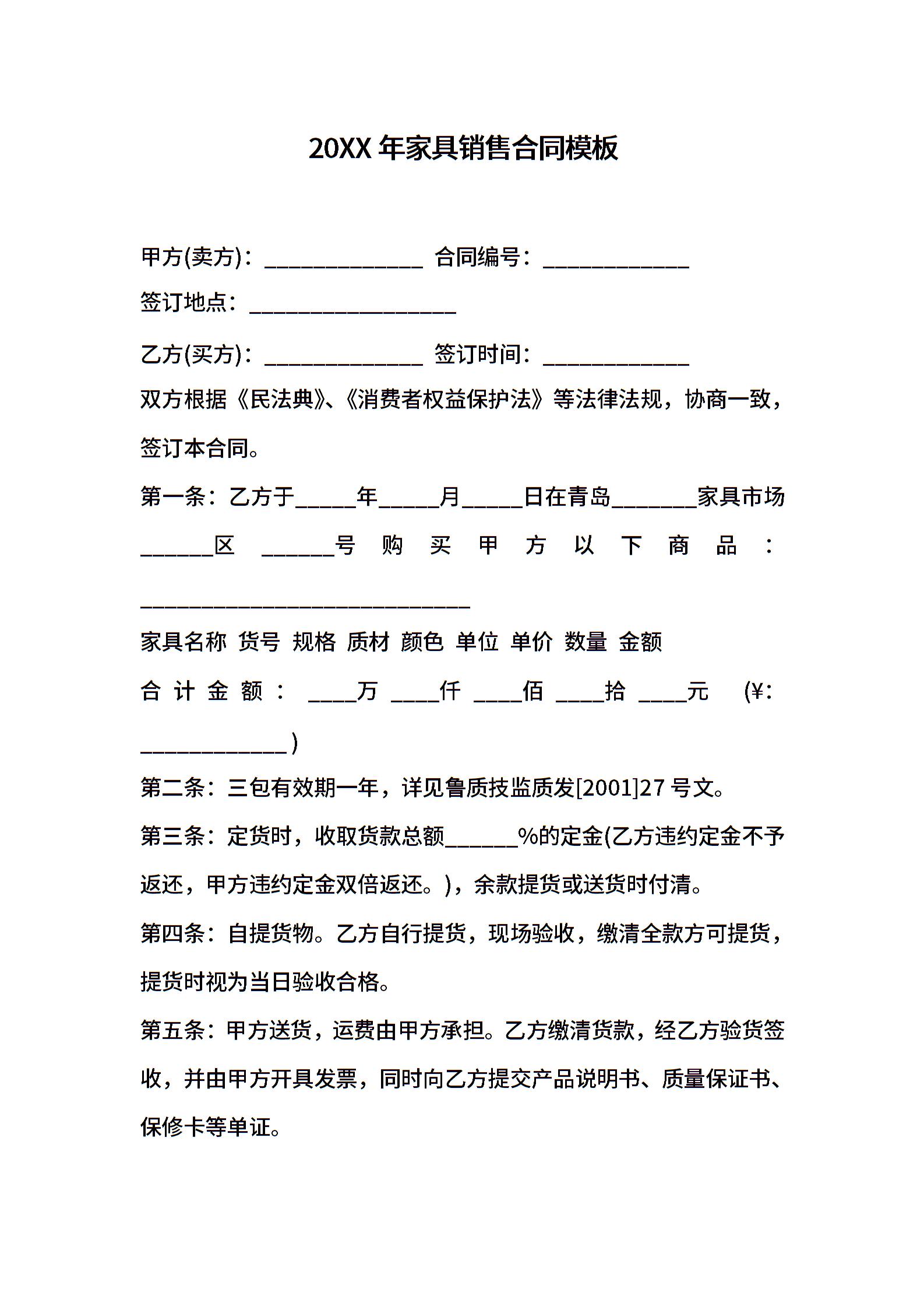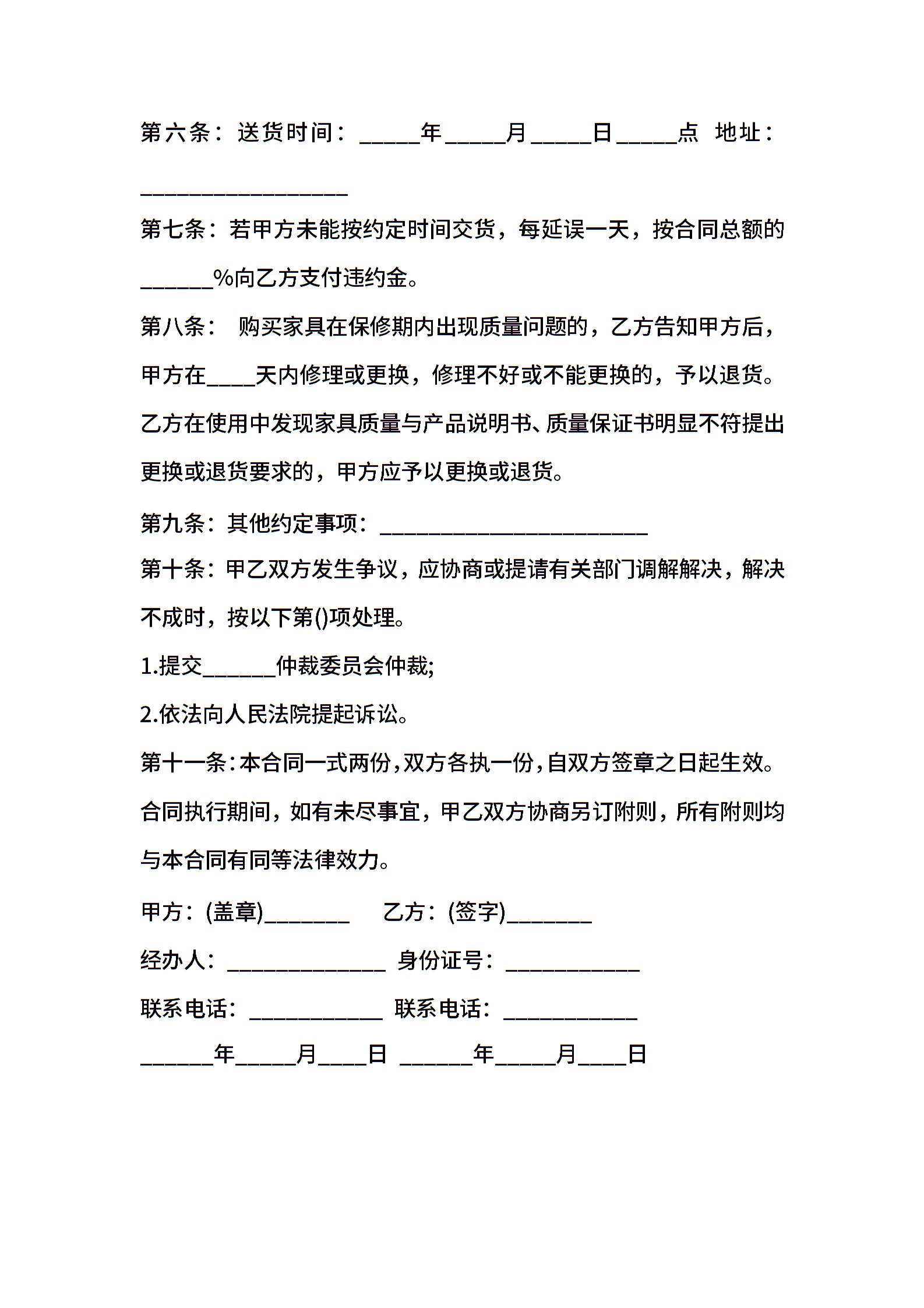 2021年家具销售合同模板