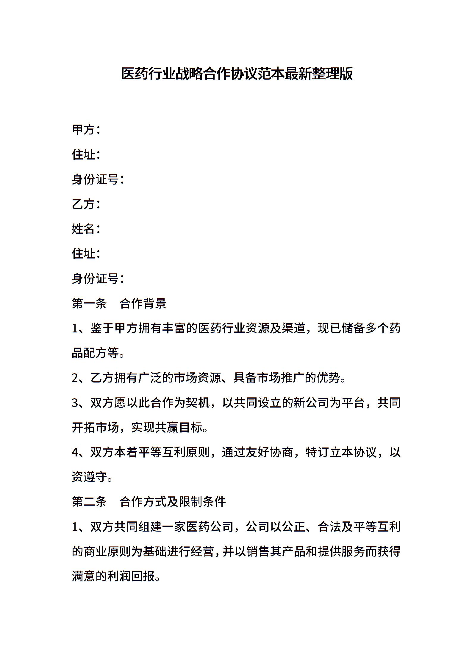 医药行业战略合作协议范本最新整理版