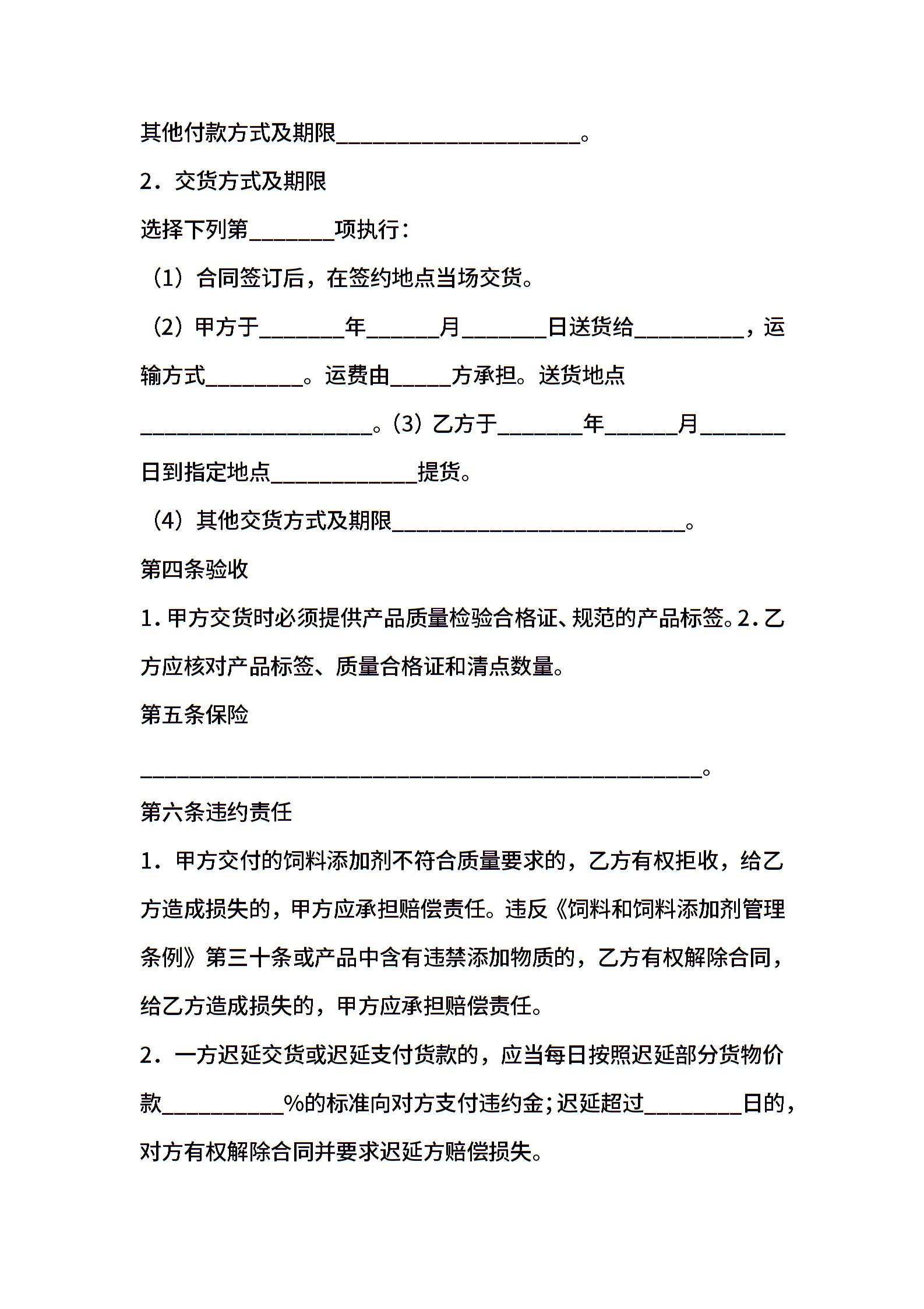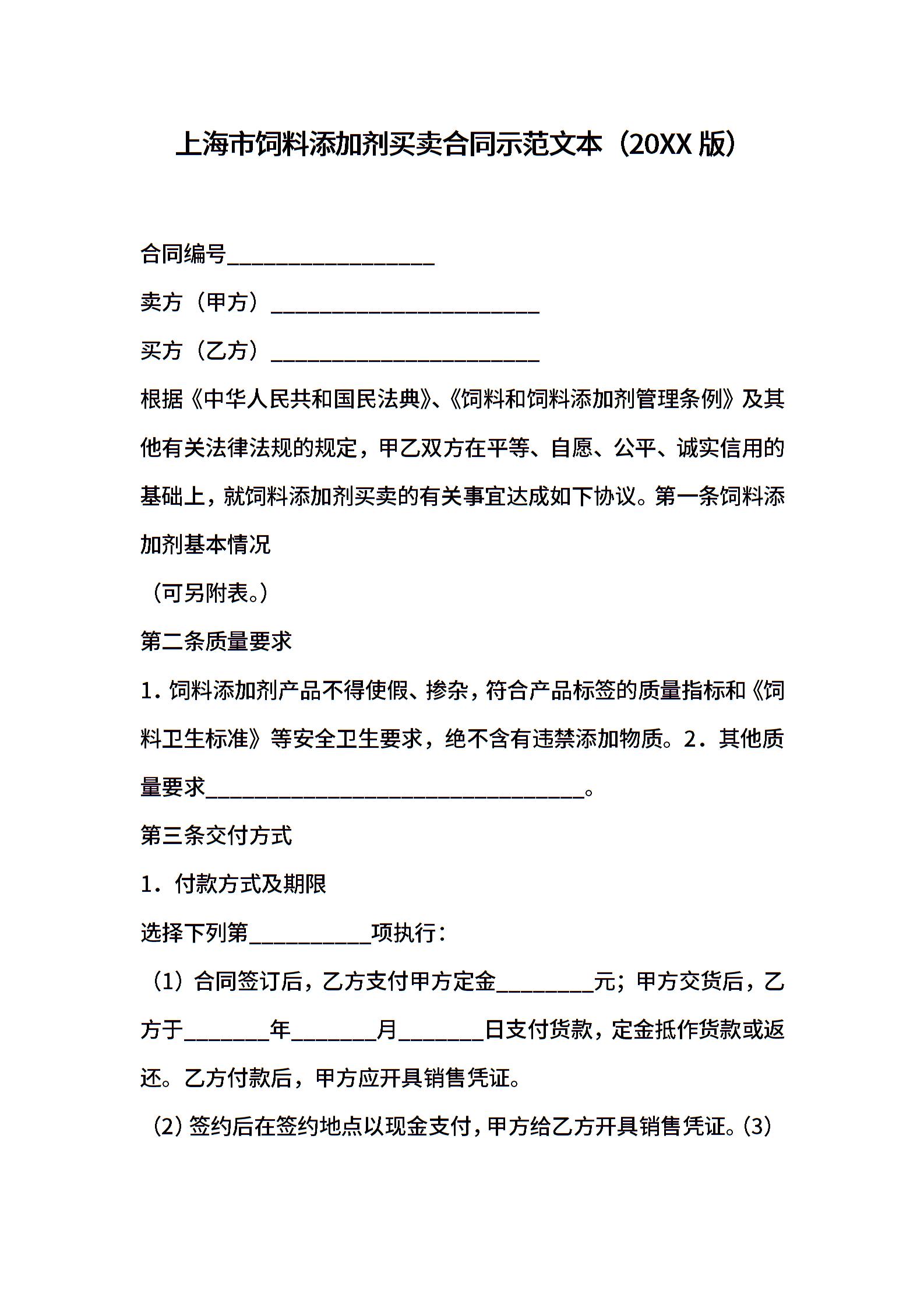 上海市饲料添加剂买卖合同示范文本(2021版)