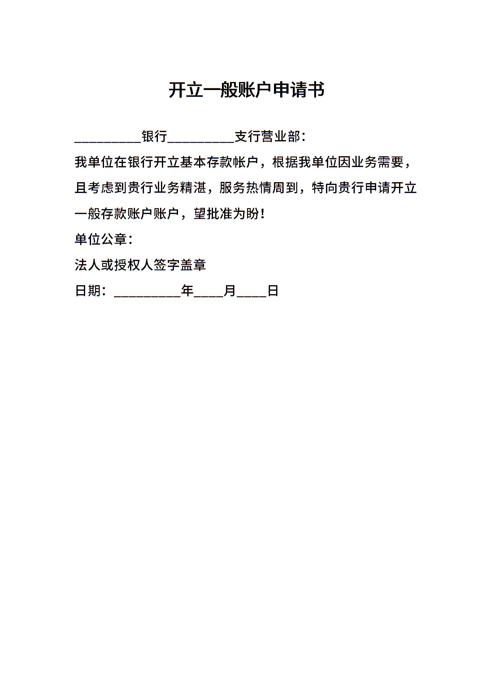开立一般账户申请书
