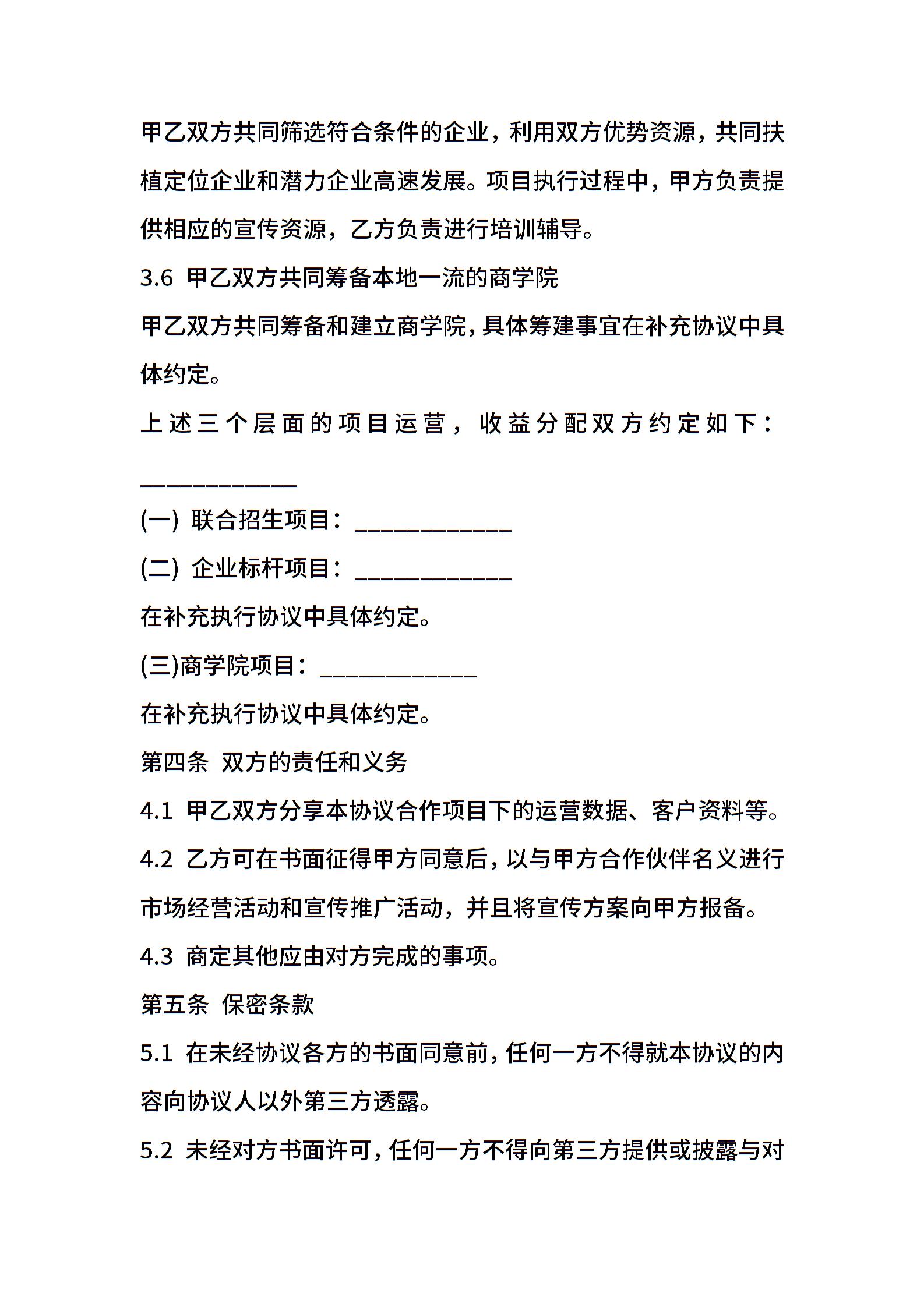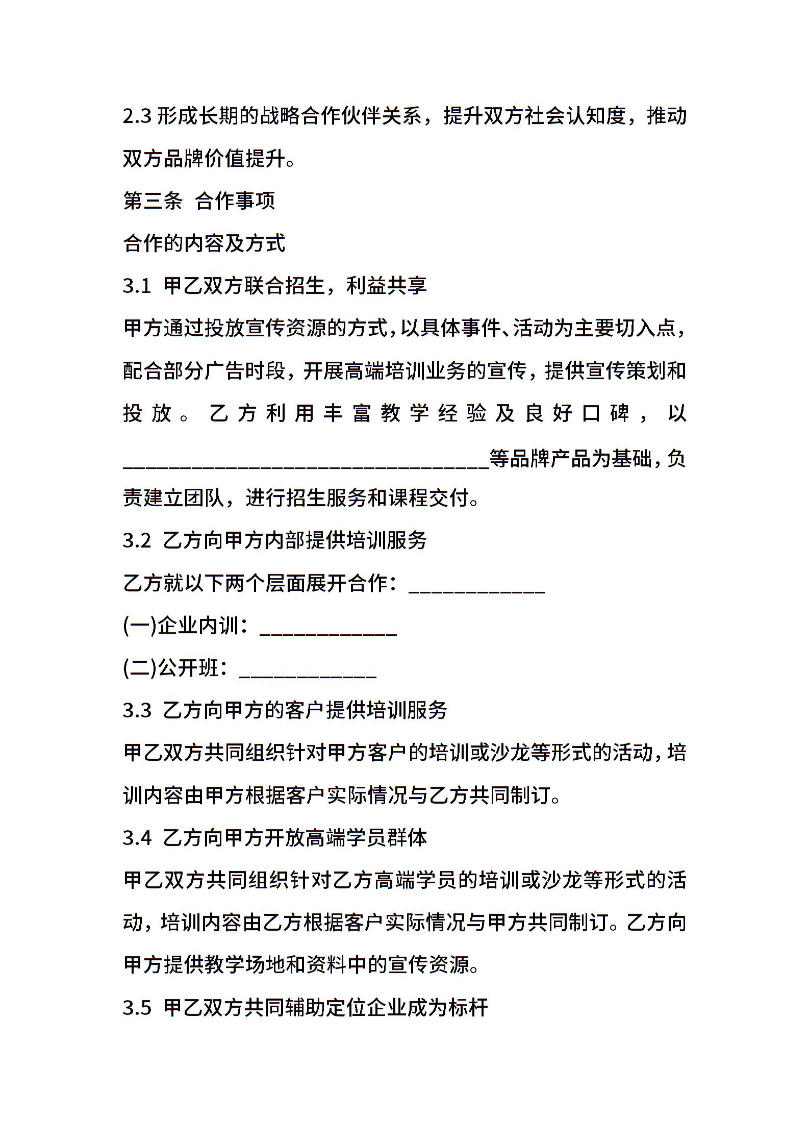 教育培训行业合作协议样书