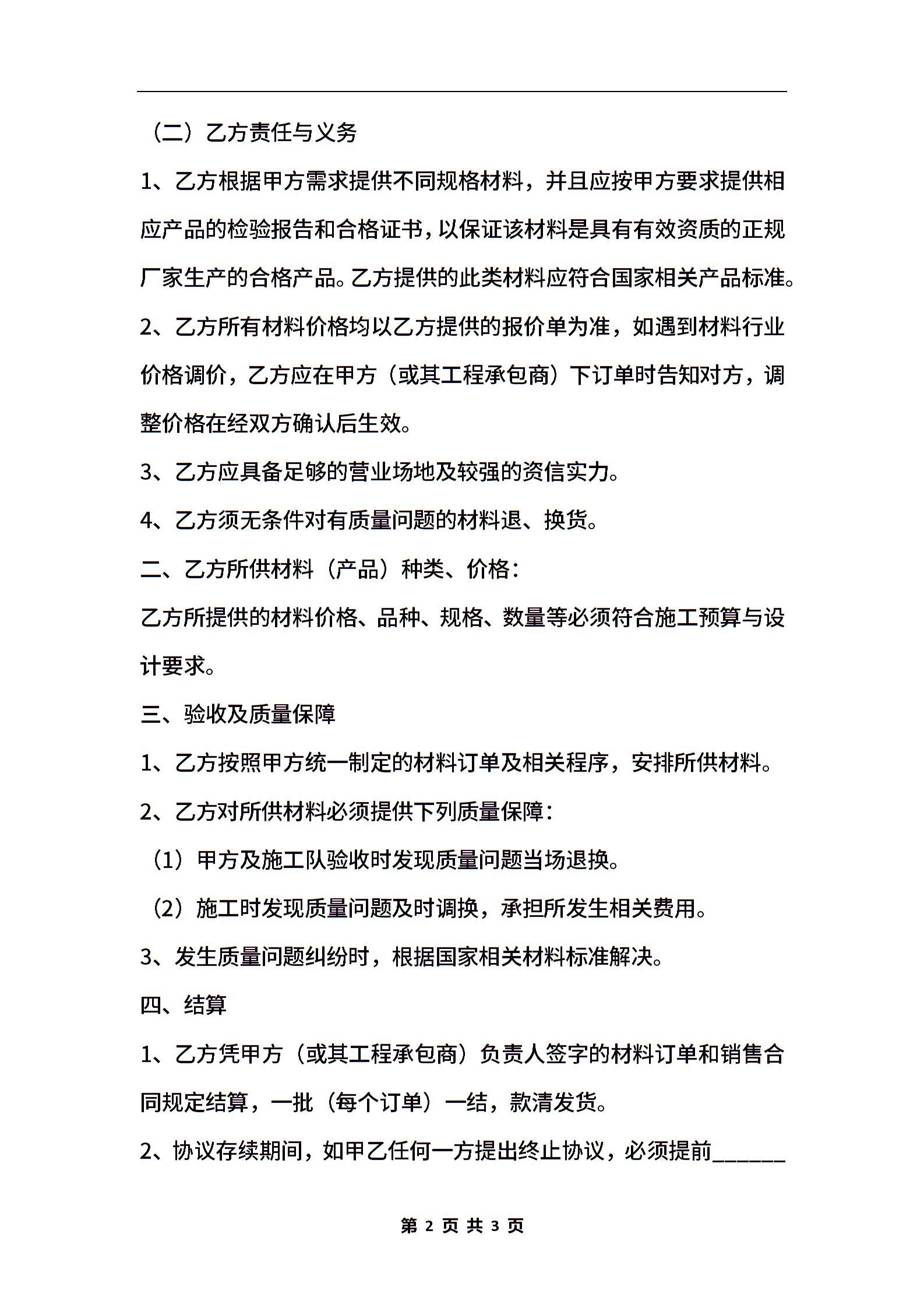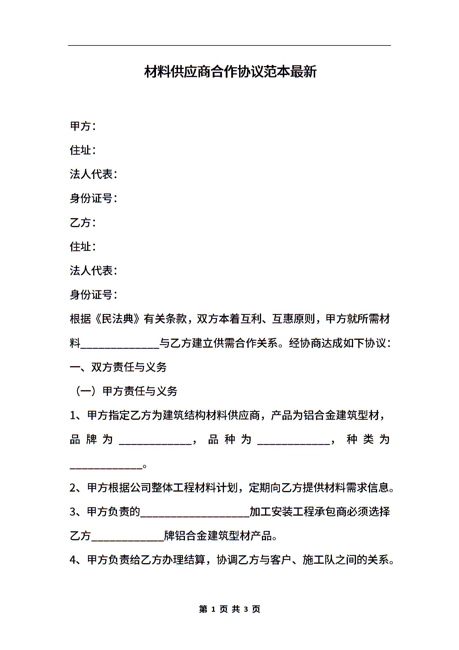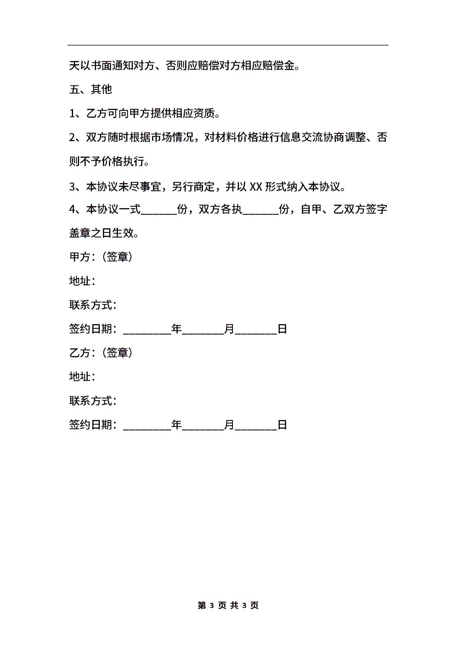 材料供应商合作协议范本最新