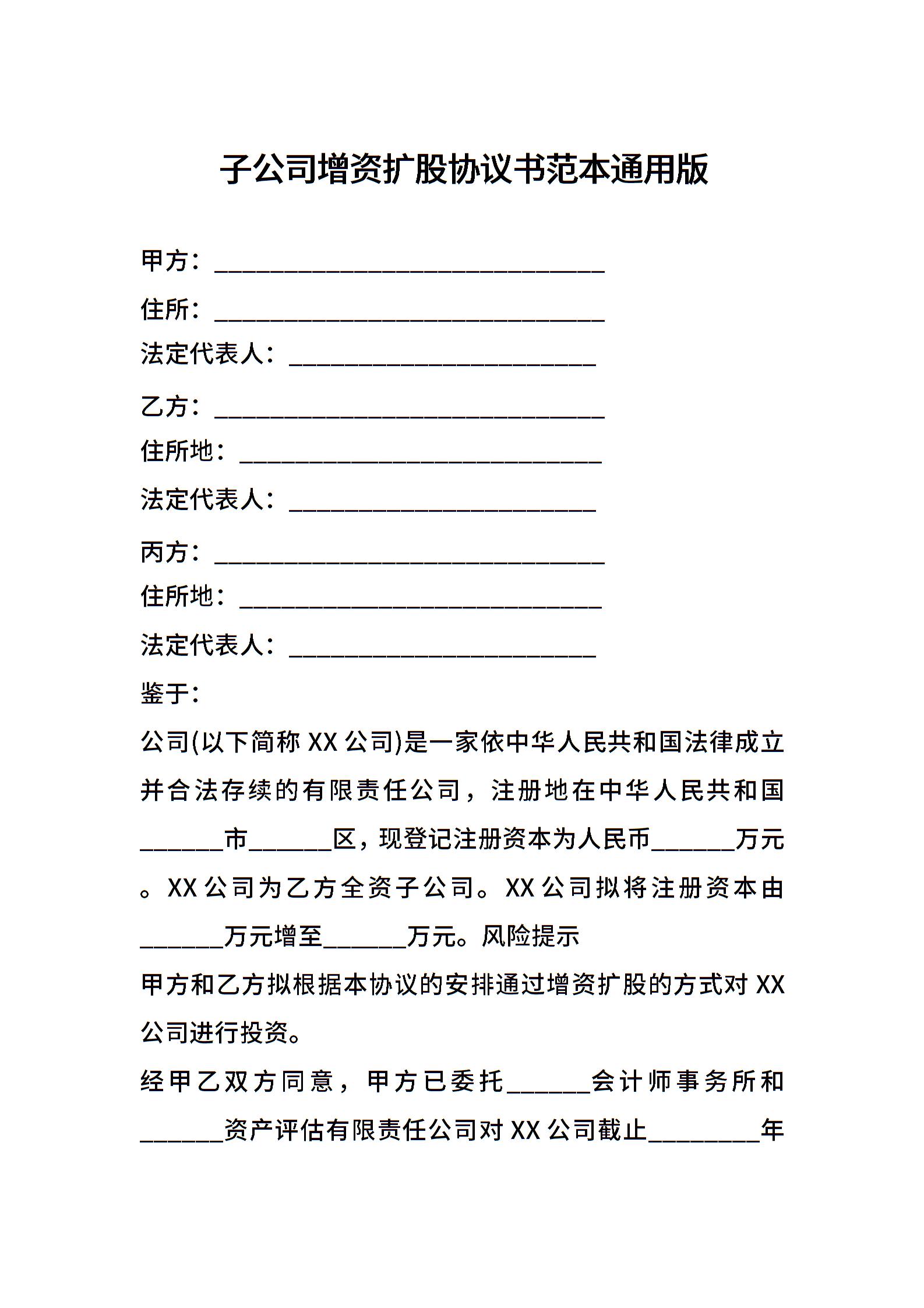 当前位置:量子办公 > 合同模板 > 投资增资 >