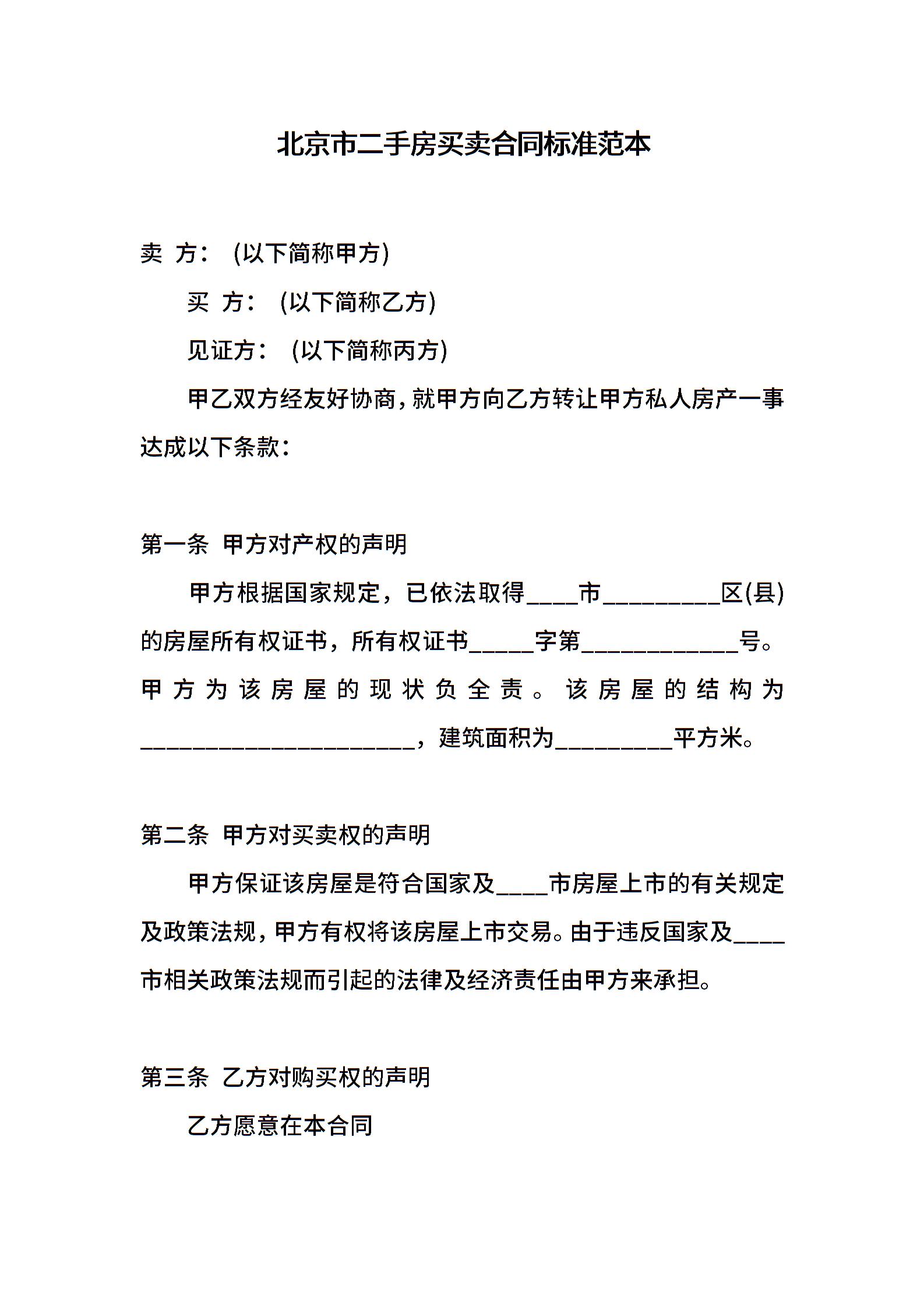 北京市二手房买卖合同标准范本