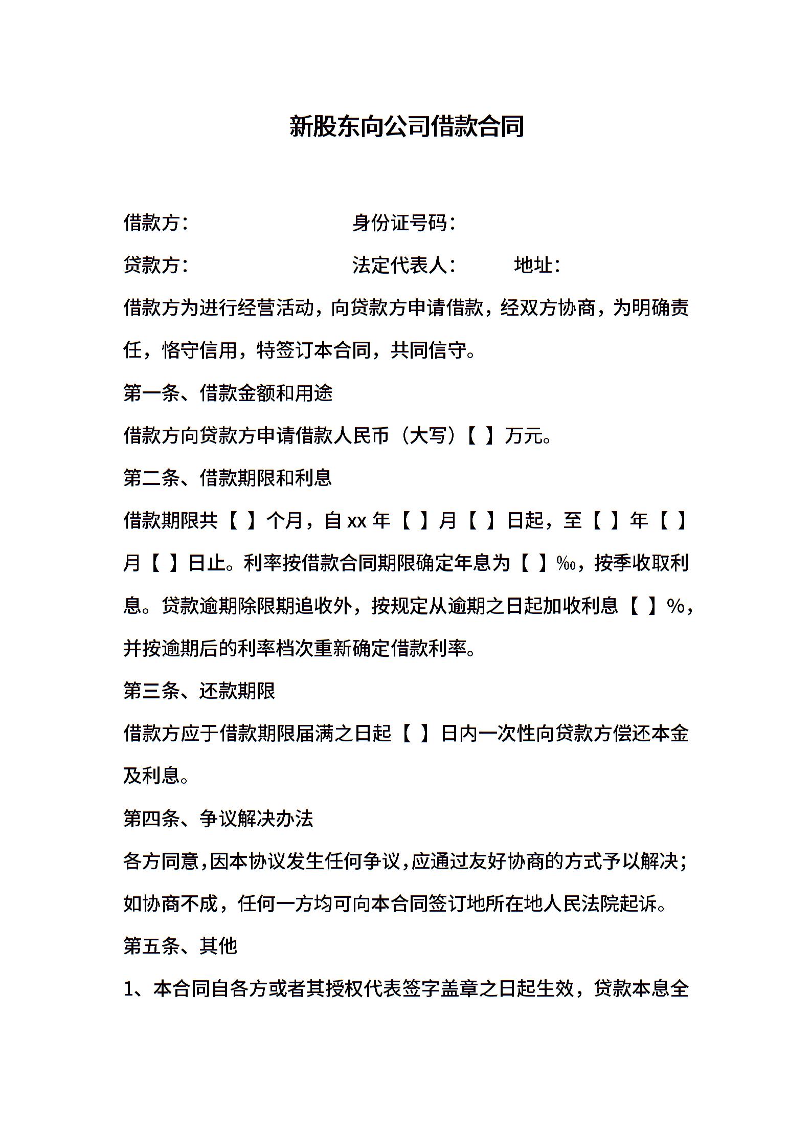 新股东向公司借款合同