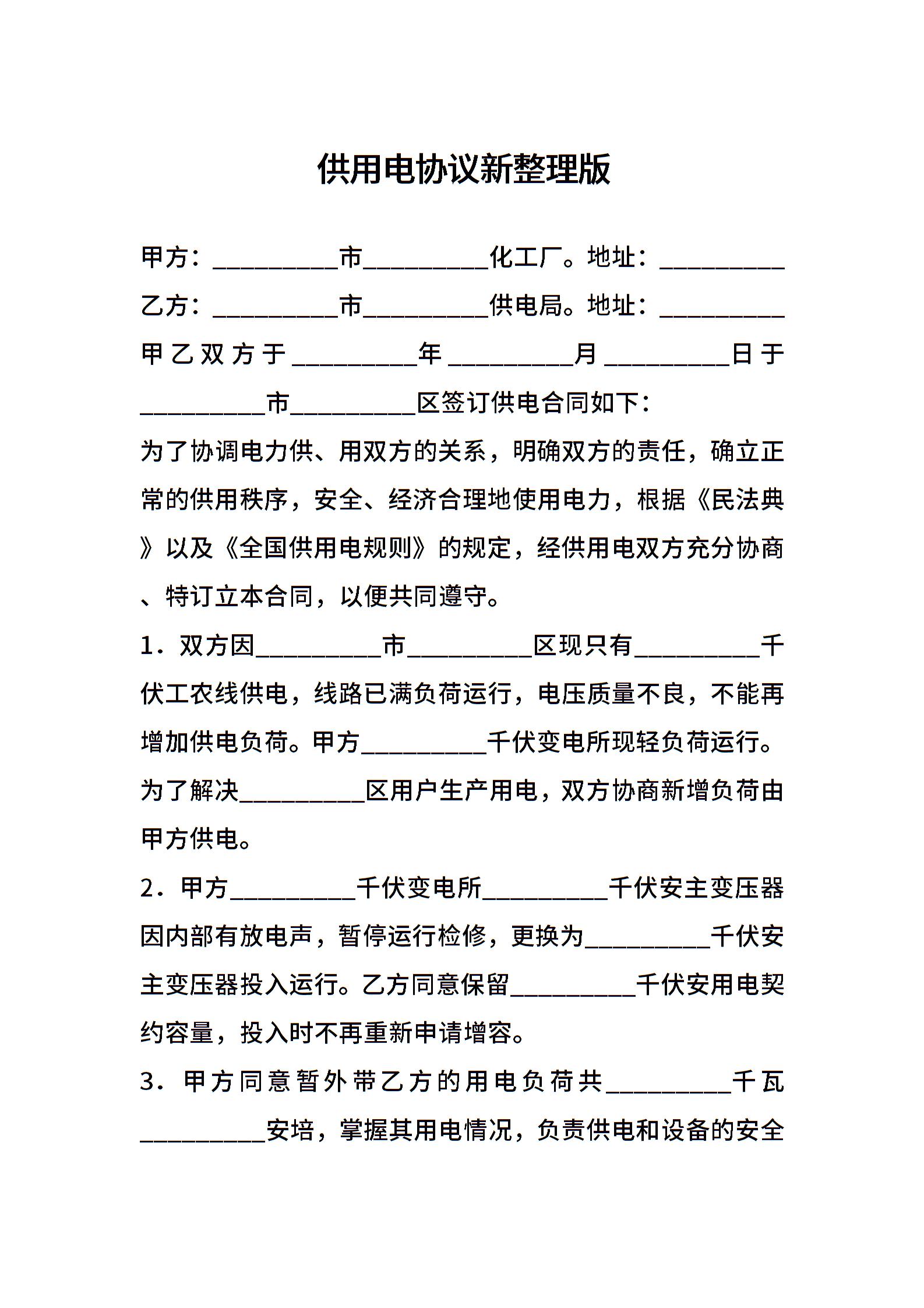 供用电协议新整理版