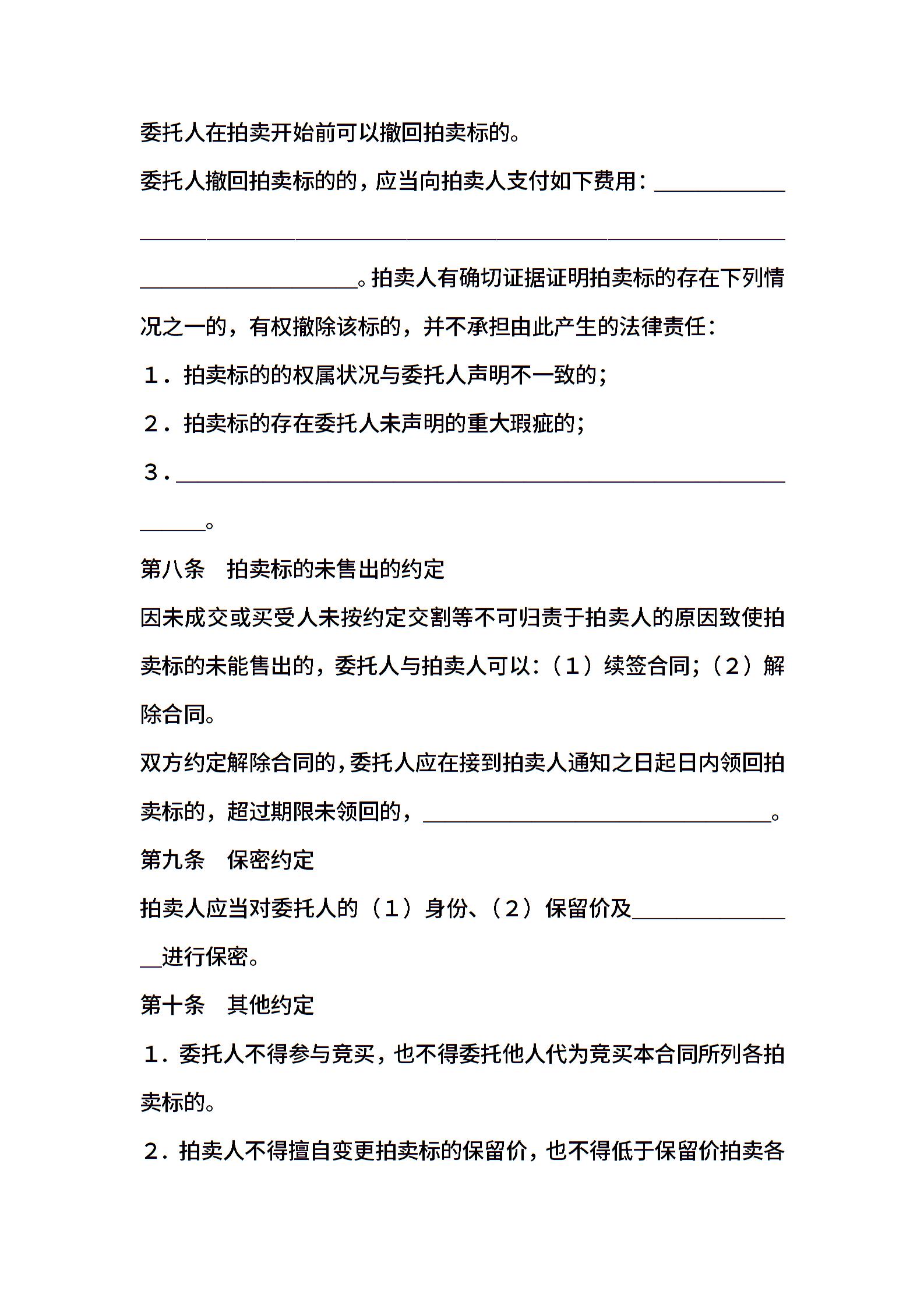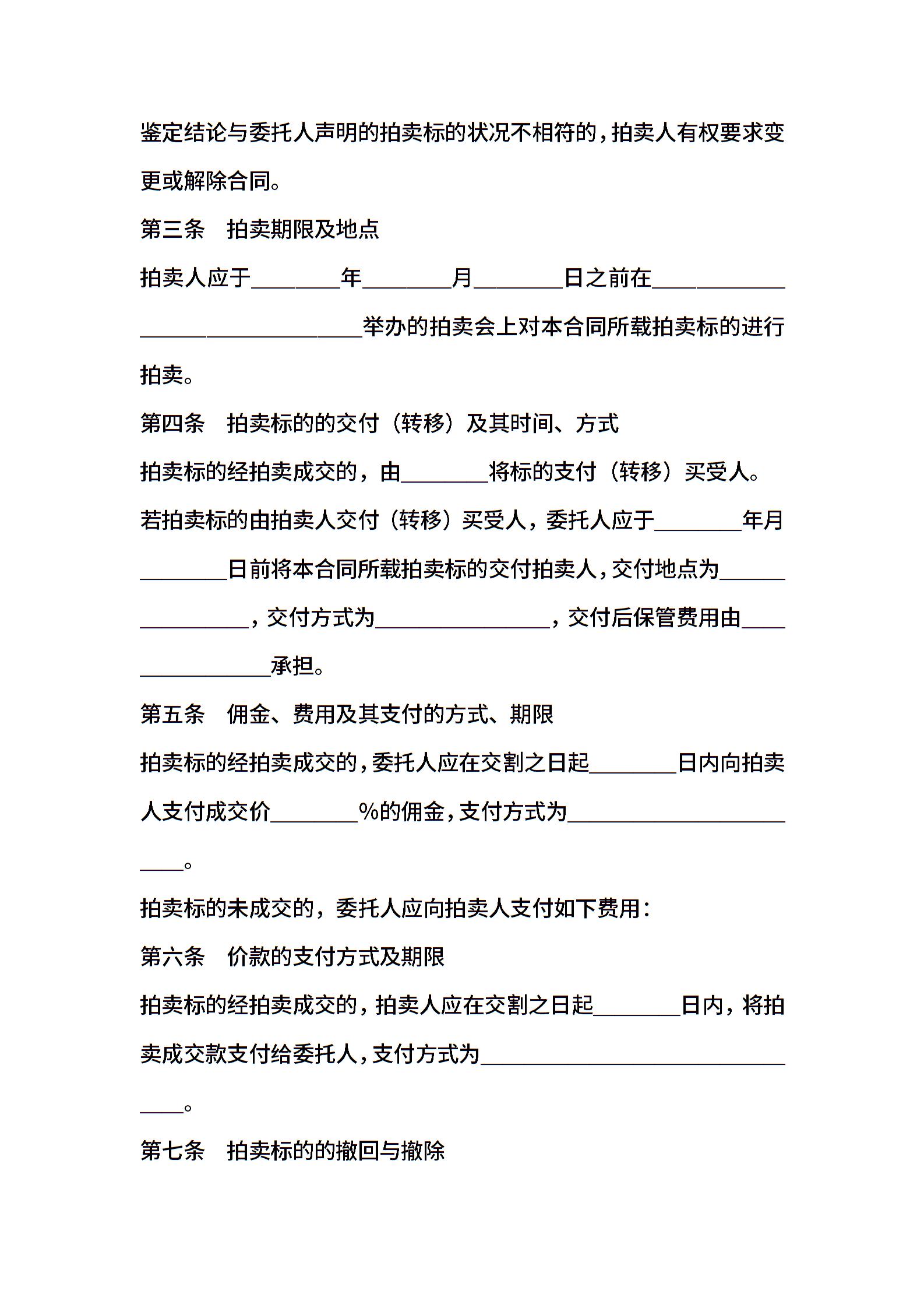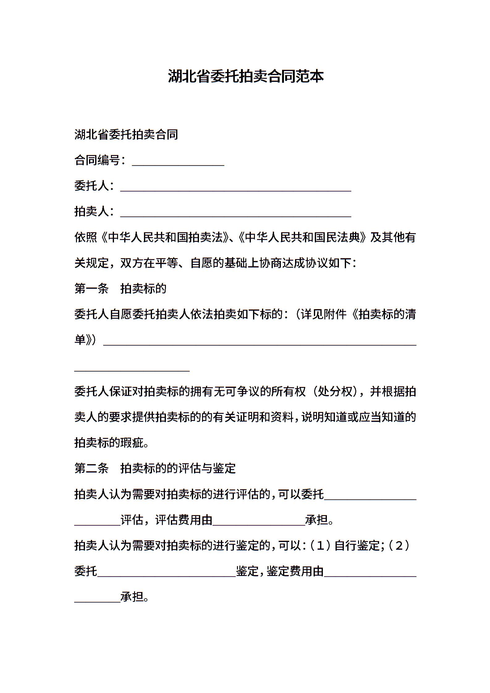 湖北省委托拍卖合同范本