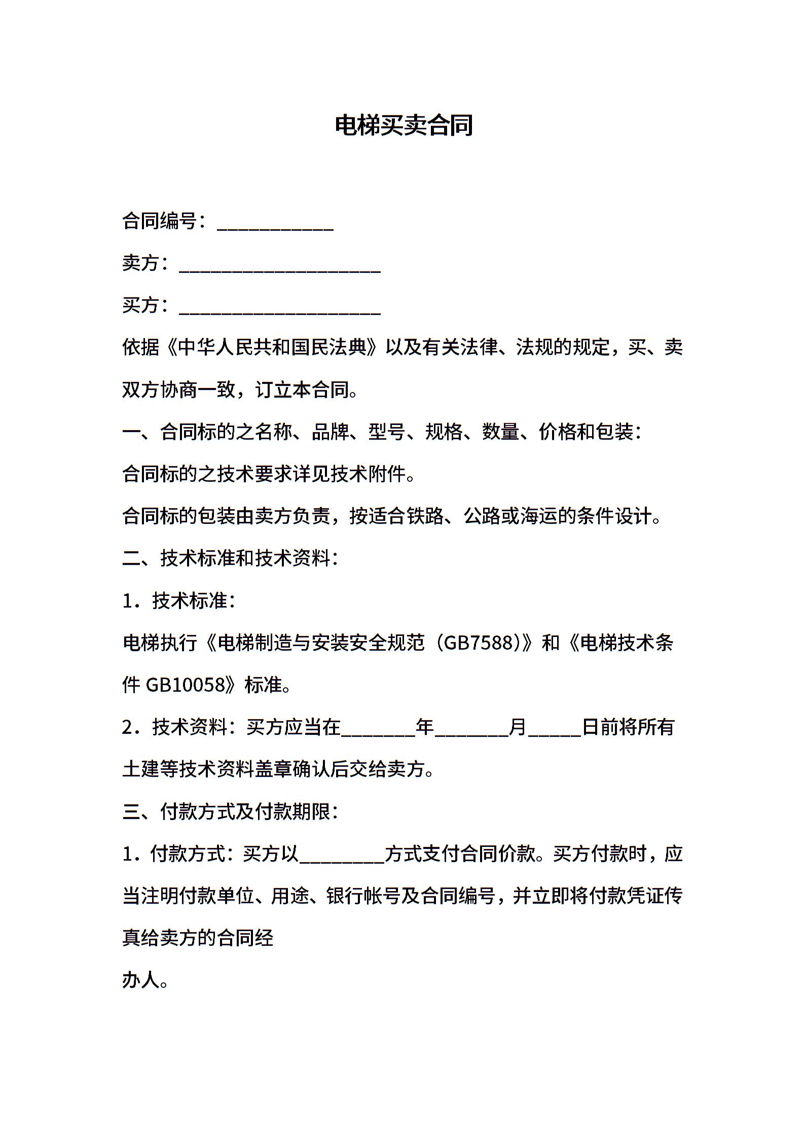 电梯买卖合同