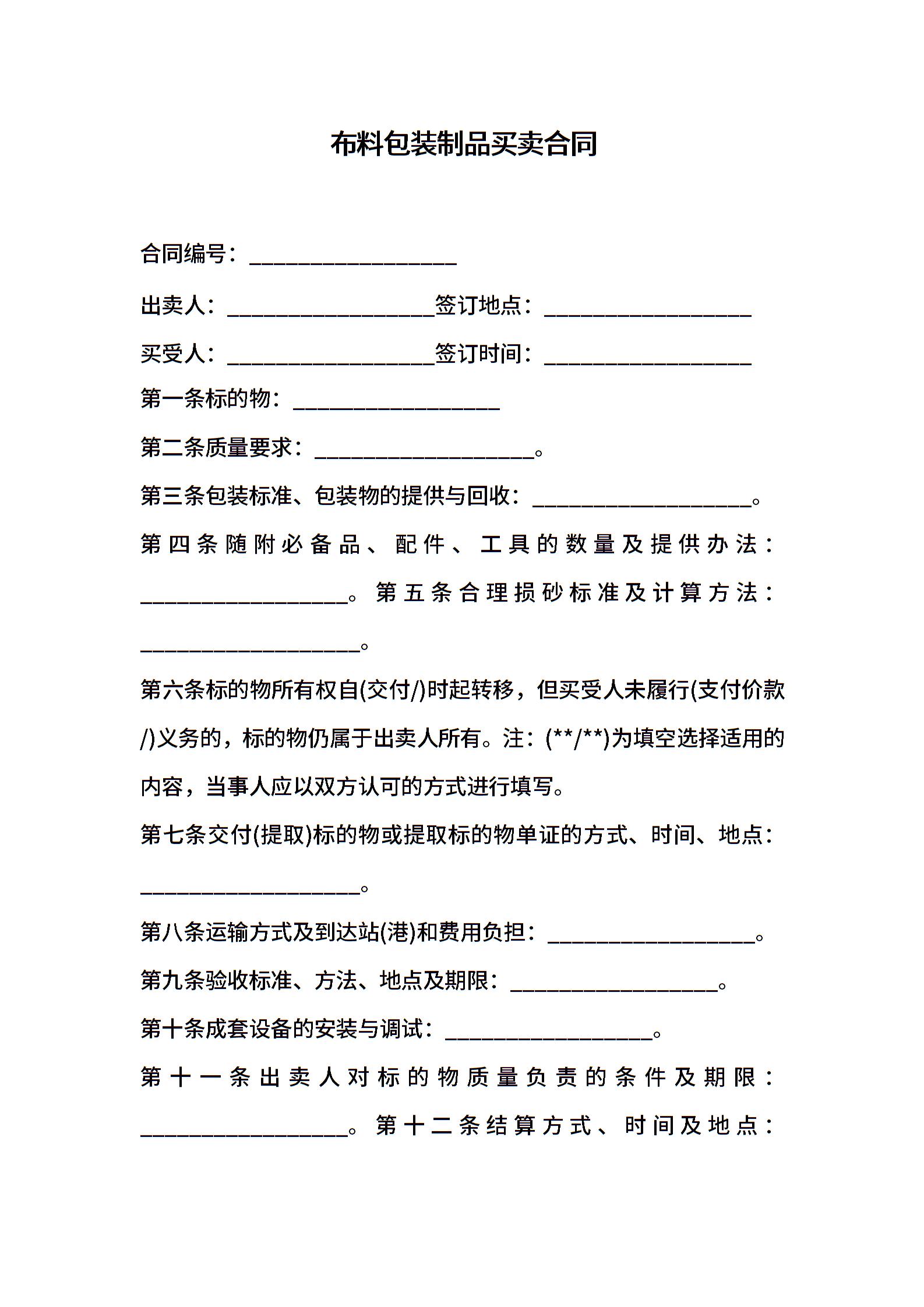 布料包装制品买卖合同