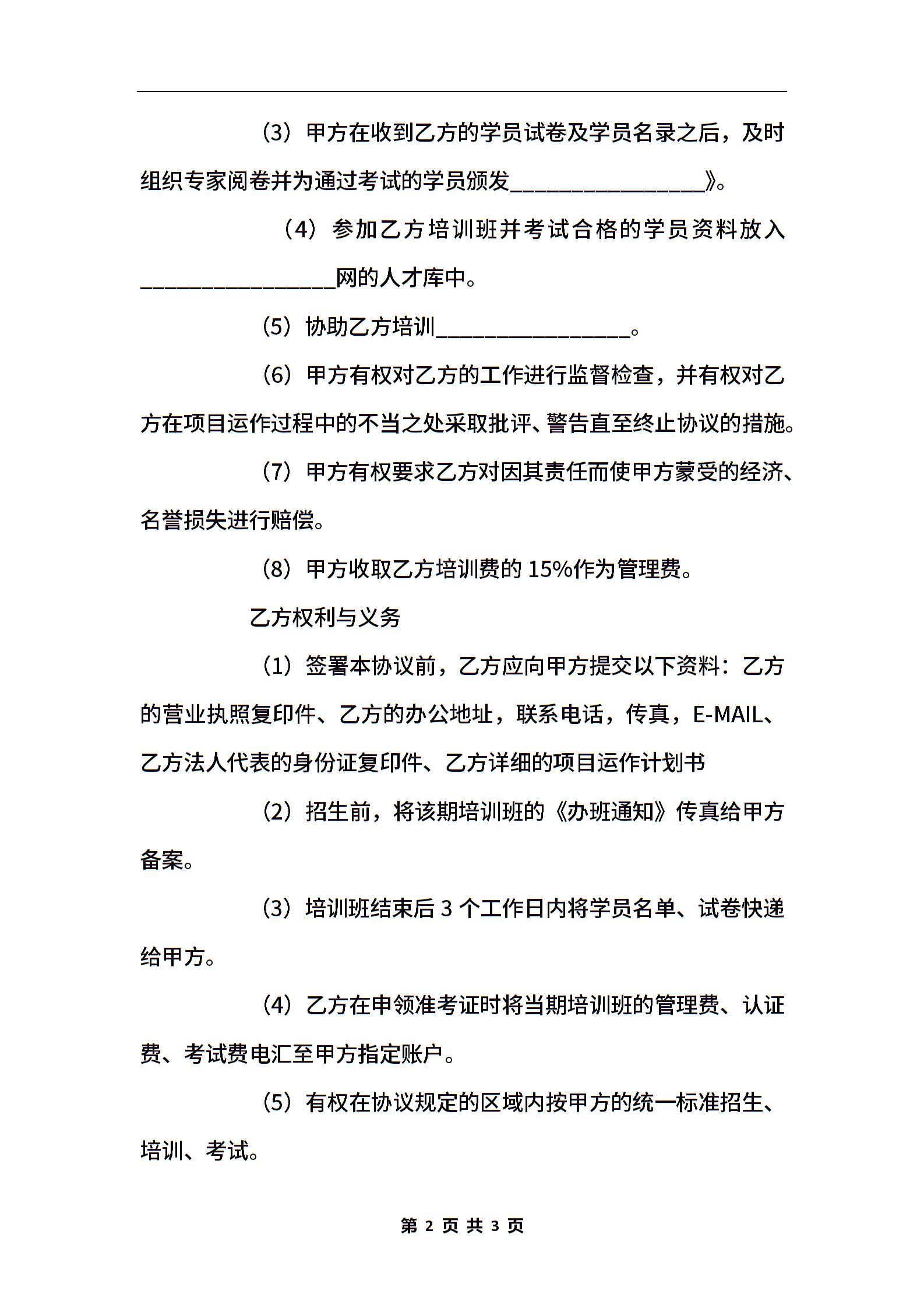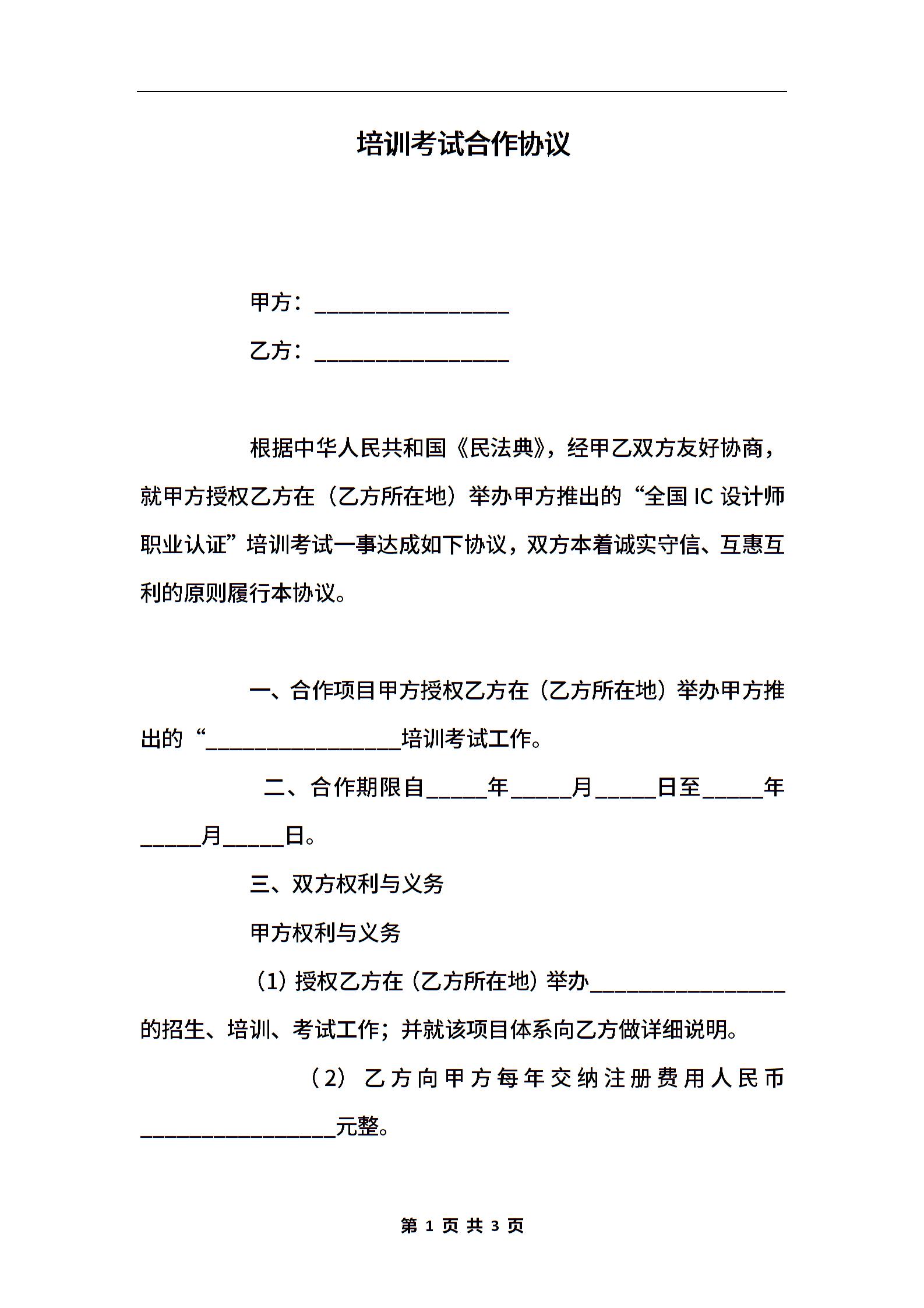 培训考试合作协议