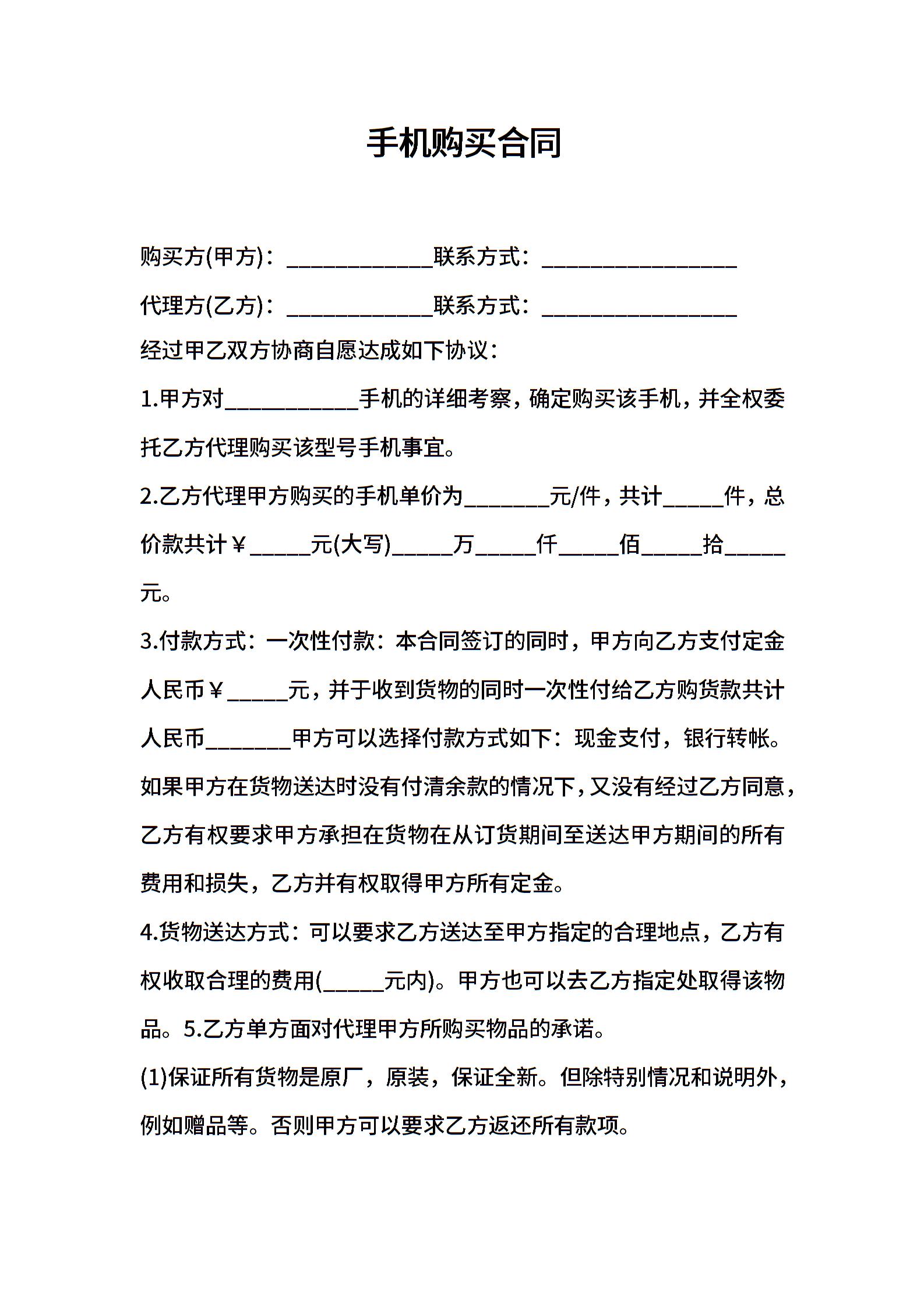 手机购买合同