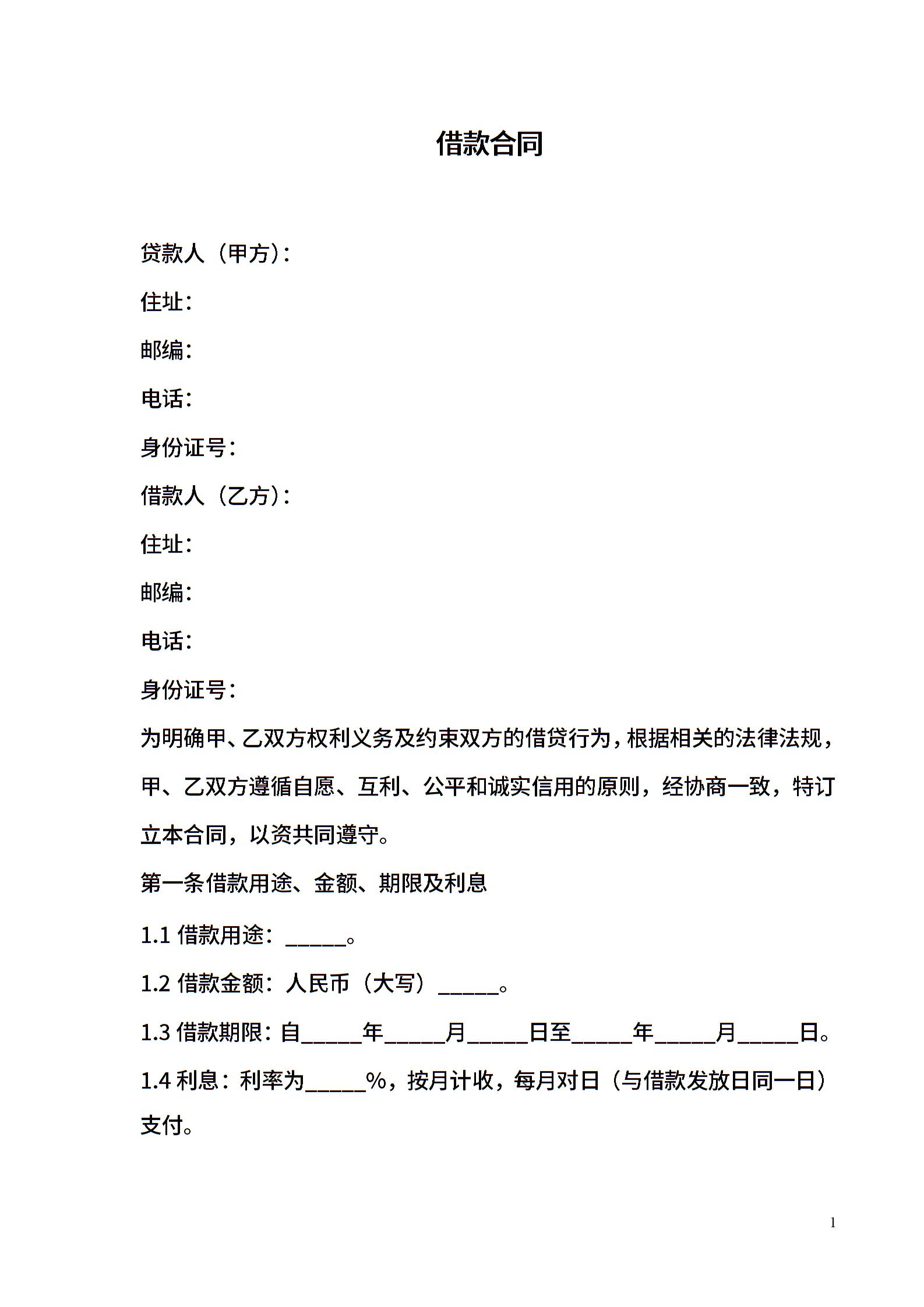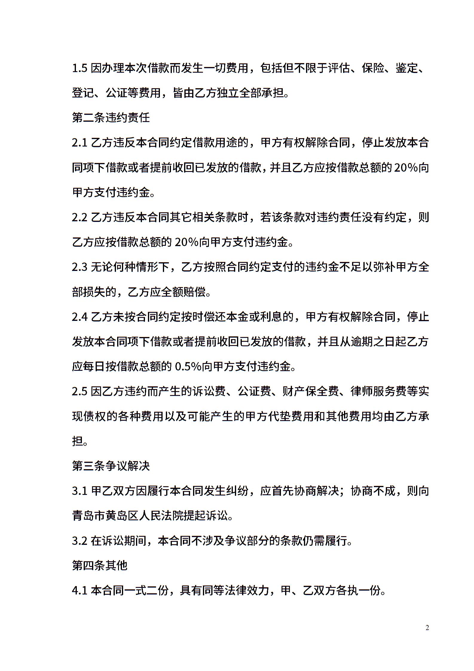 无抵押借款合同