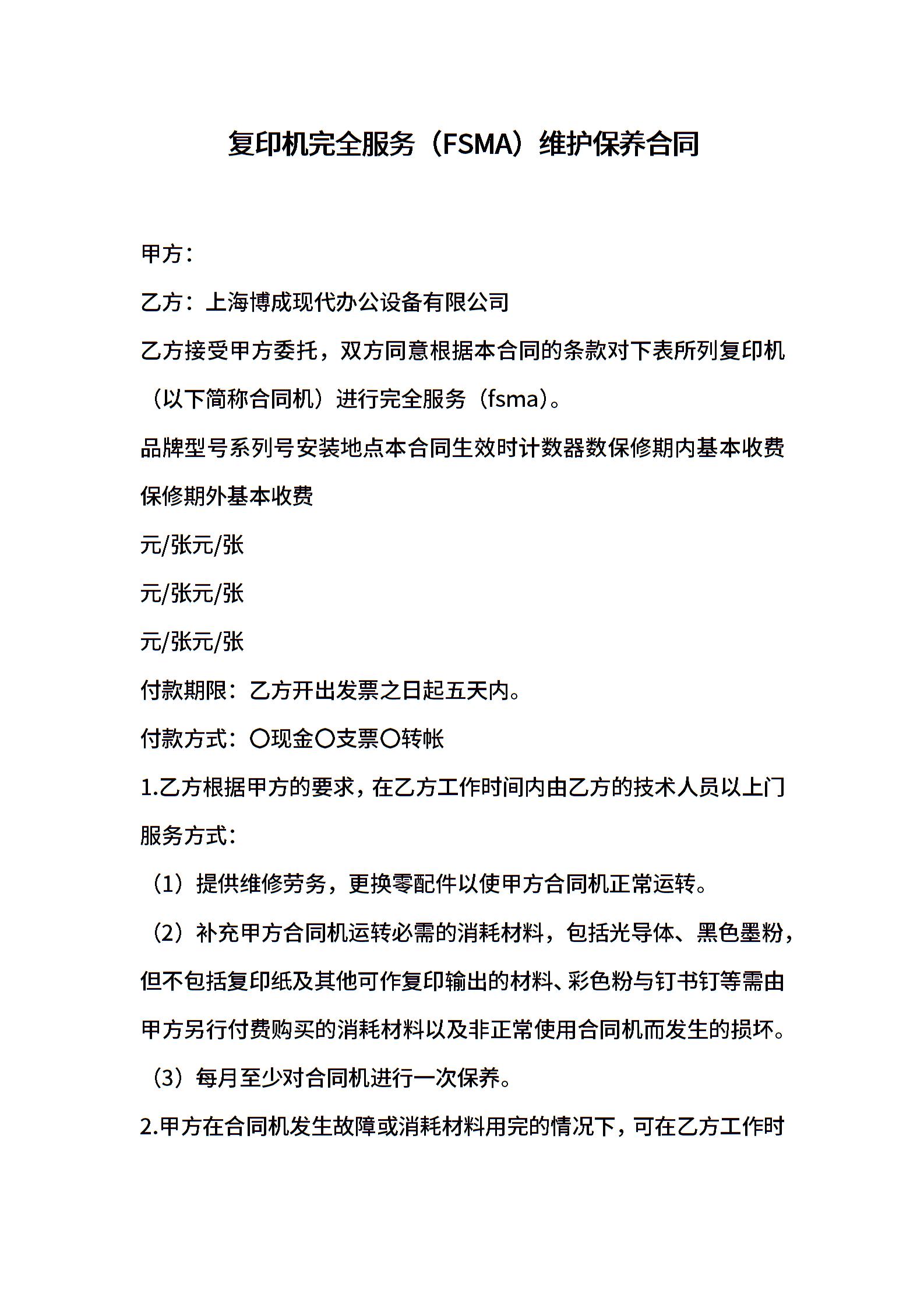 复印机完全服务(FSMA)维护保养合同
