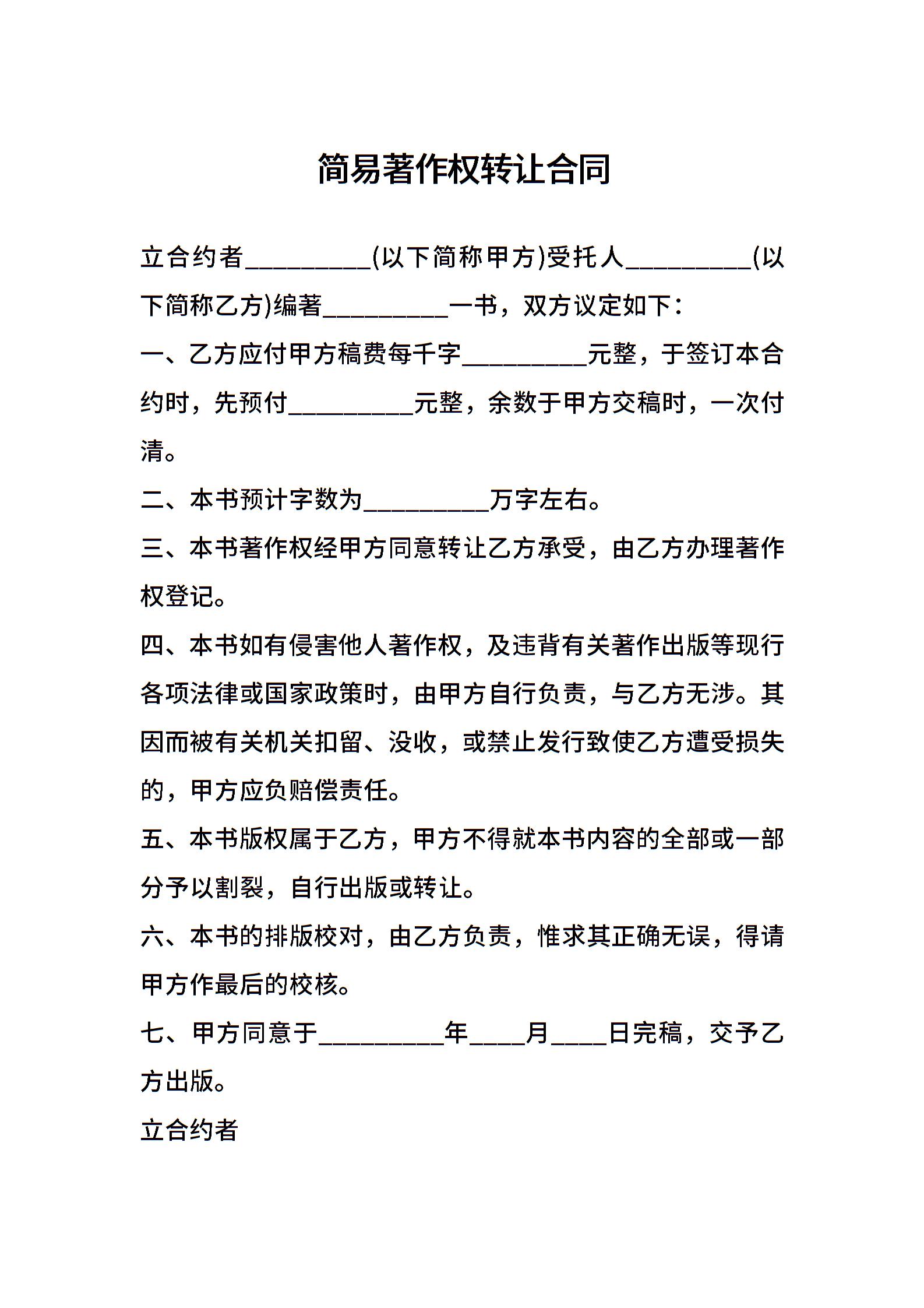 简易著作权转让合同