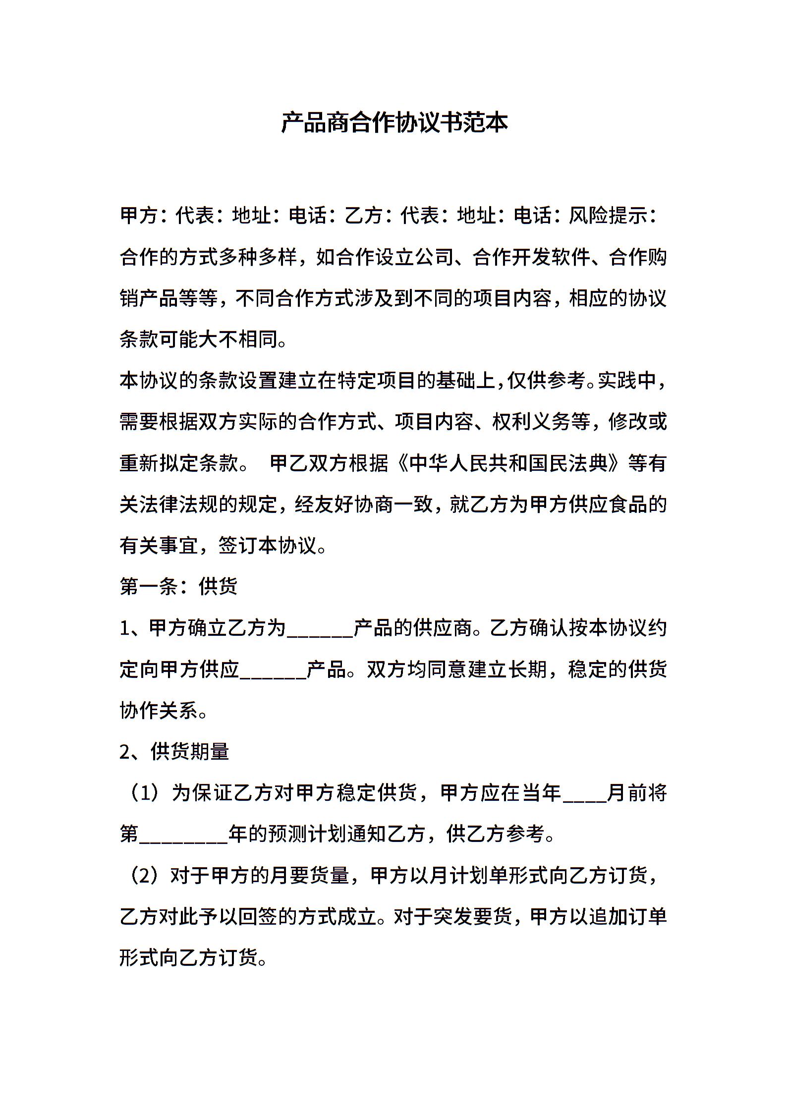 产品商合作协议书范本
