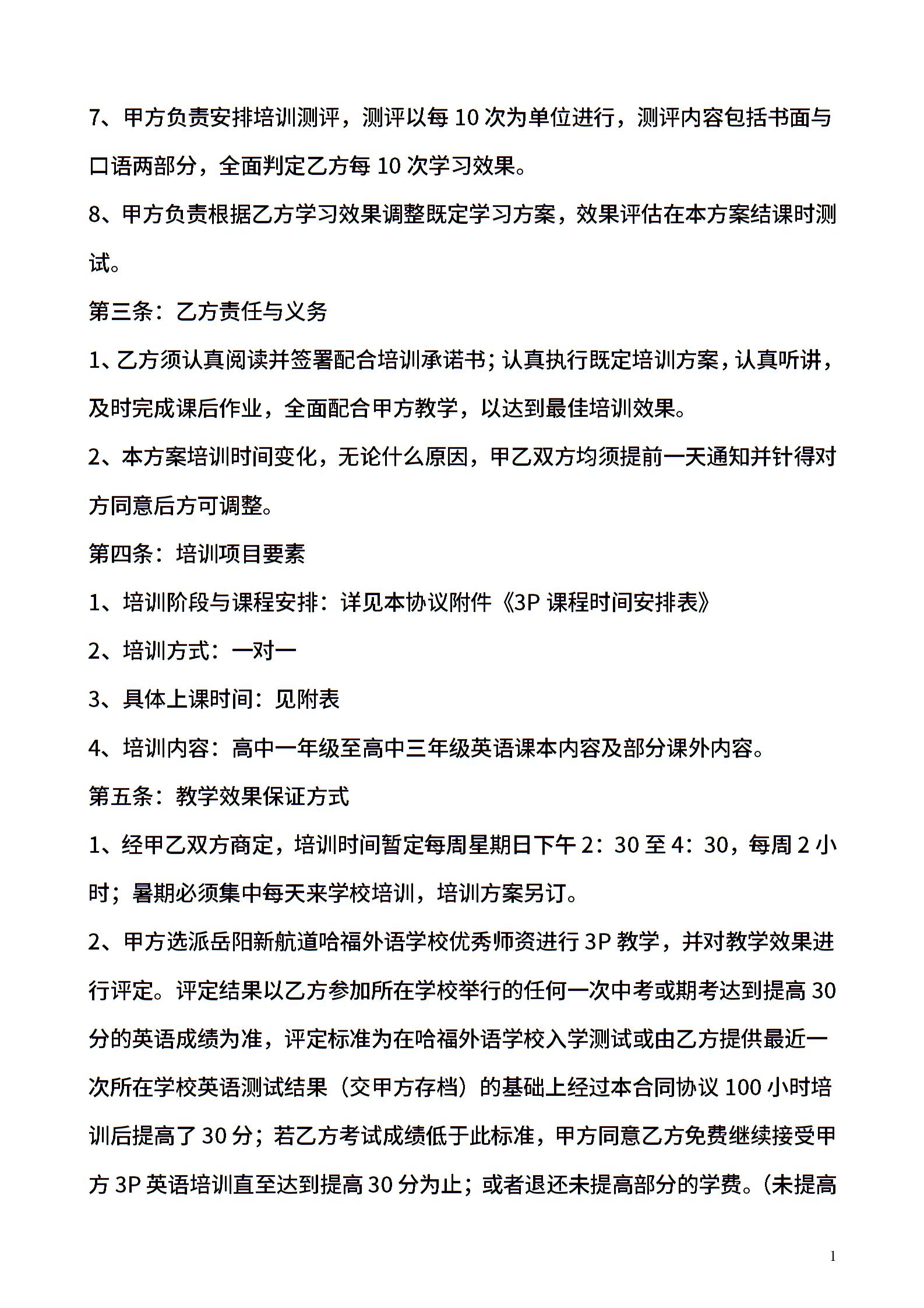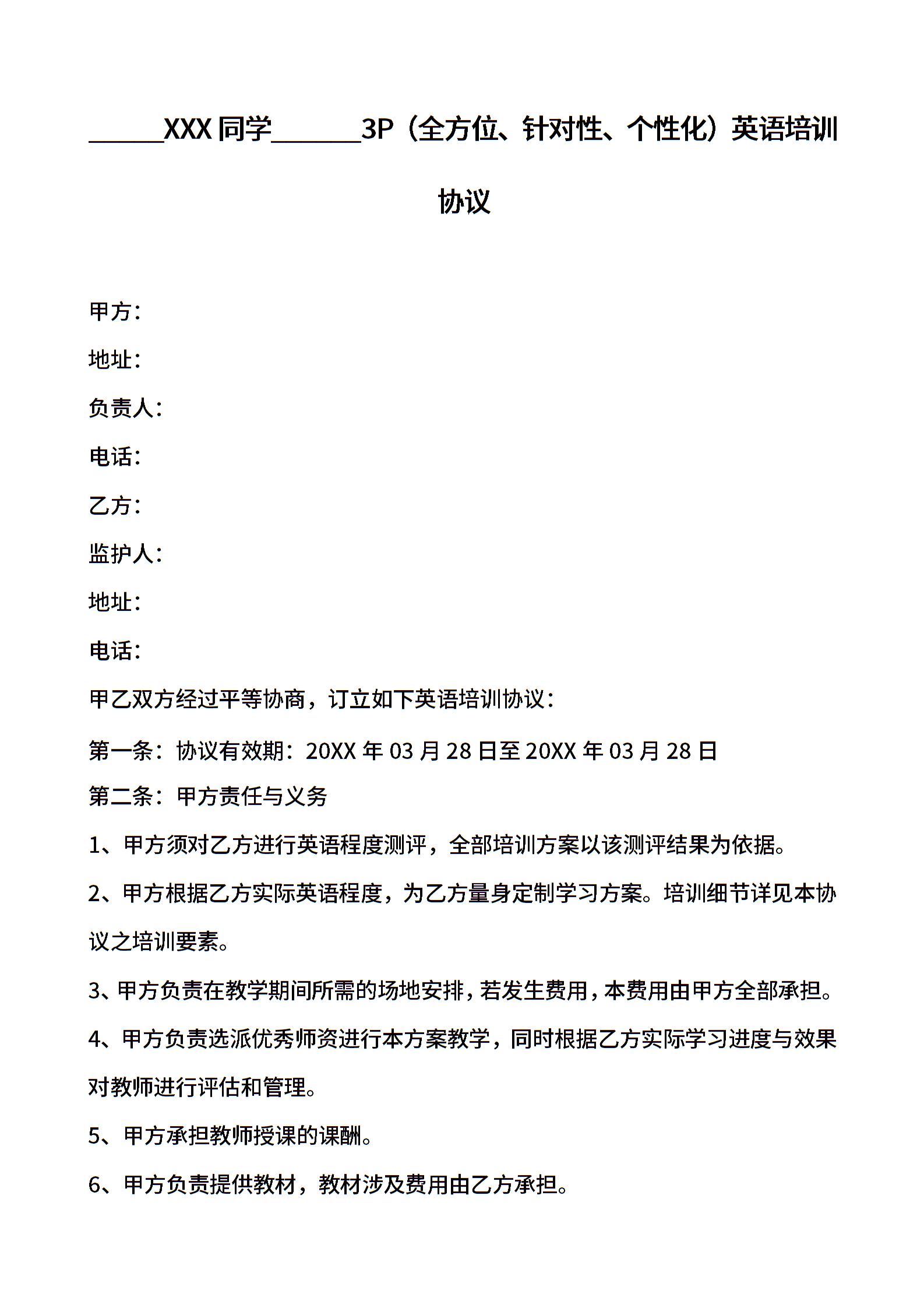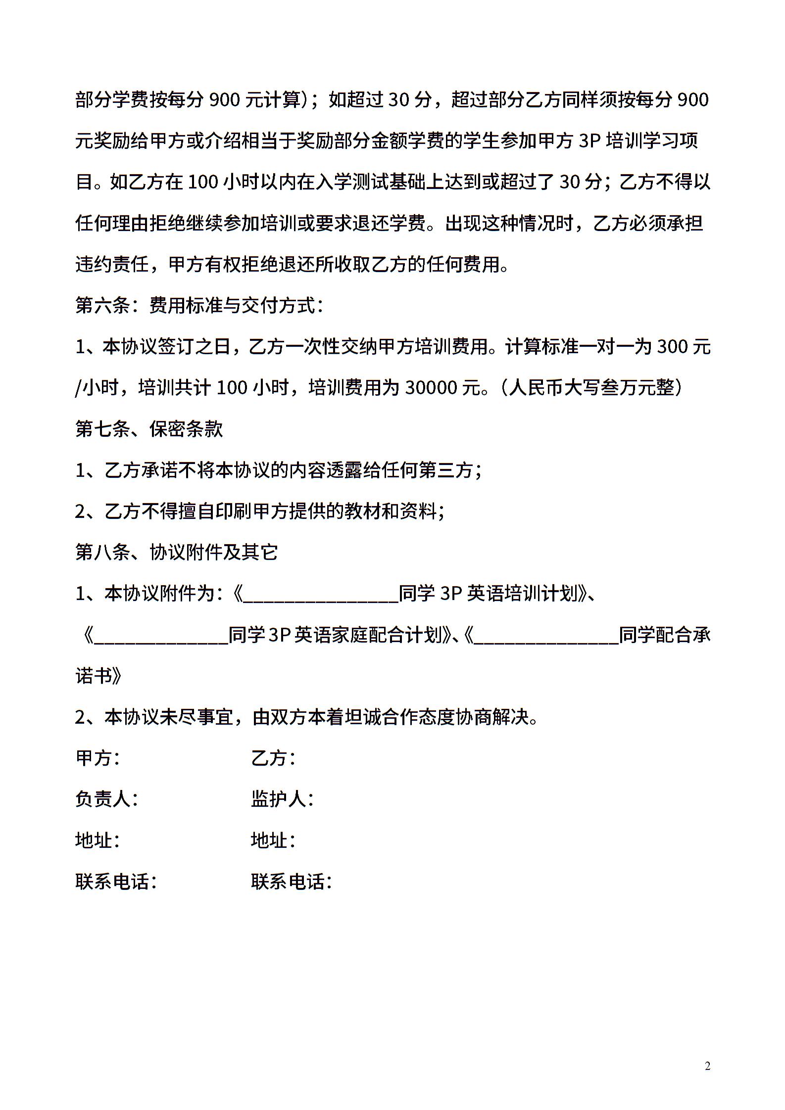 英语培训协议02