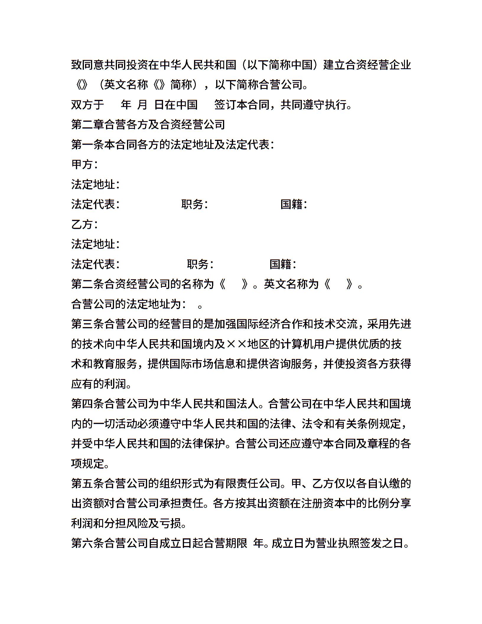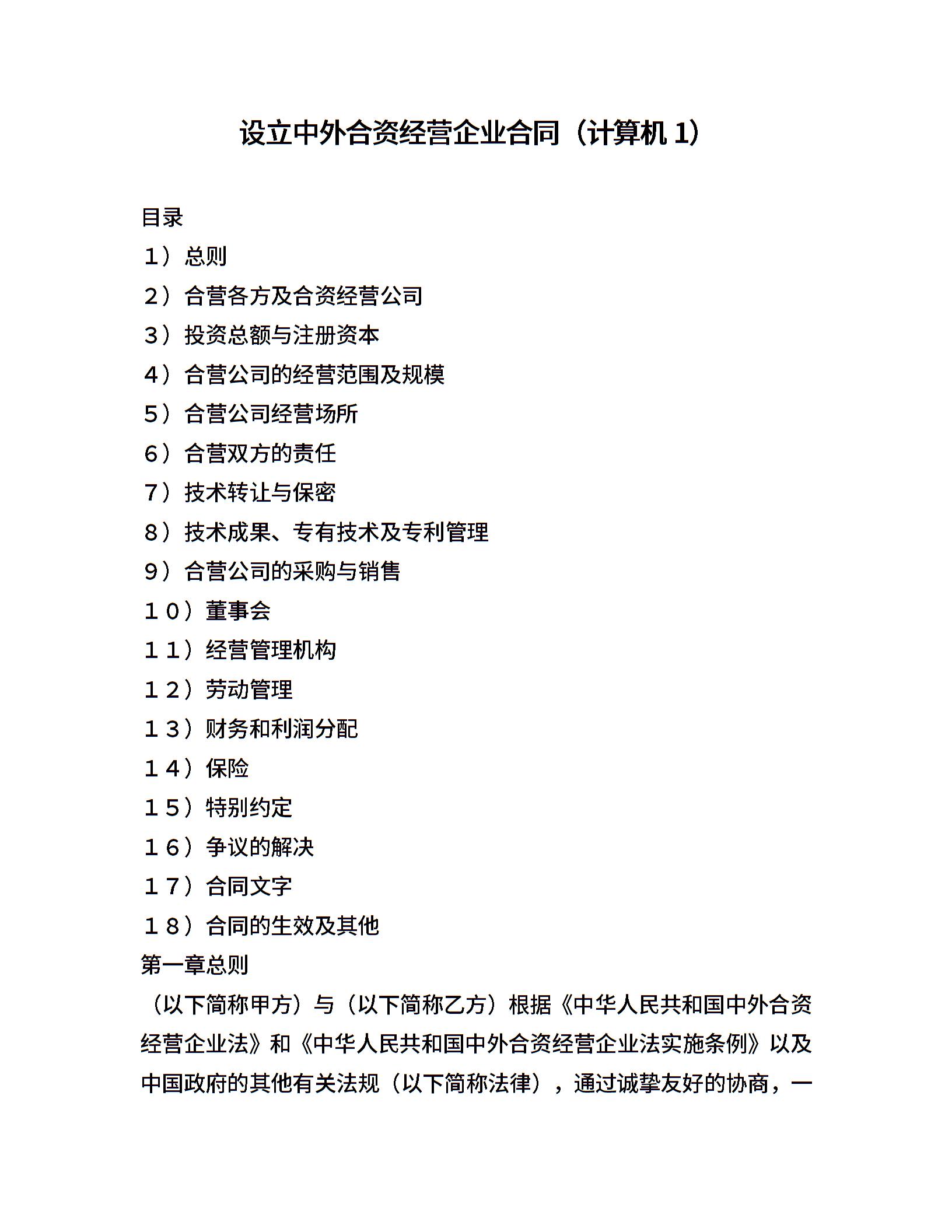 设立中外合资经营企业合同(计算机1)