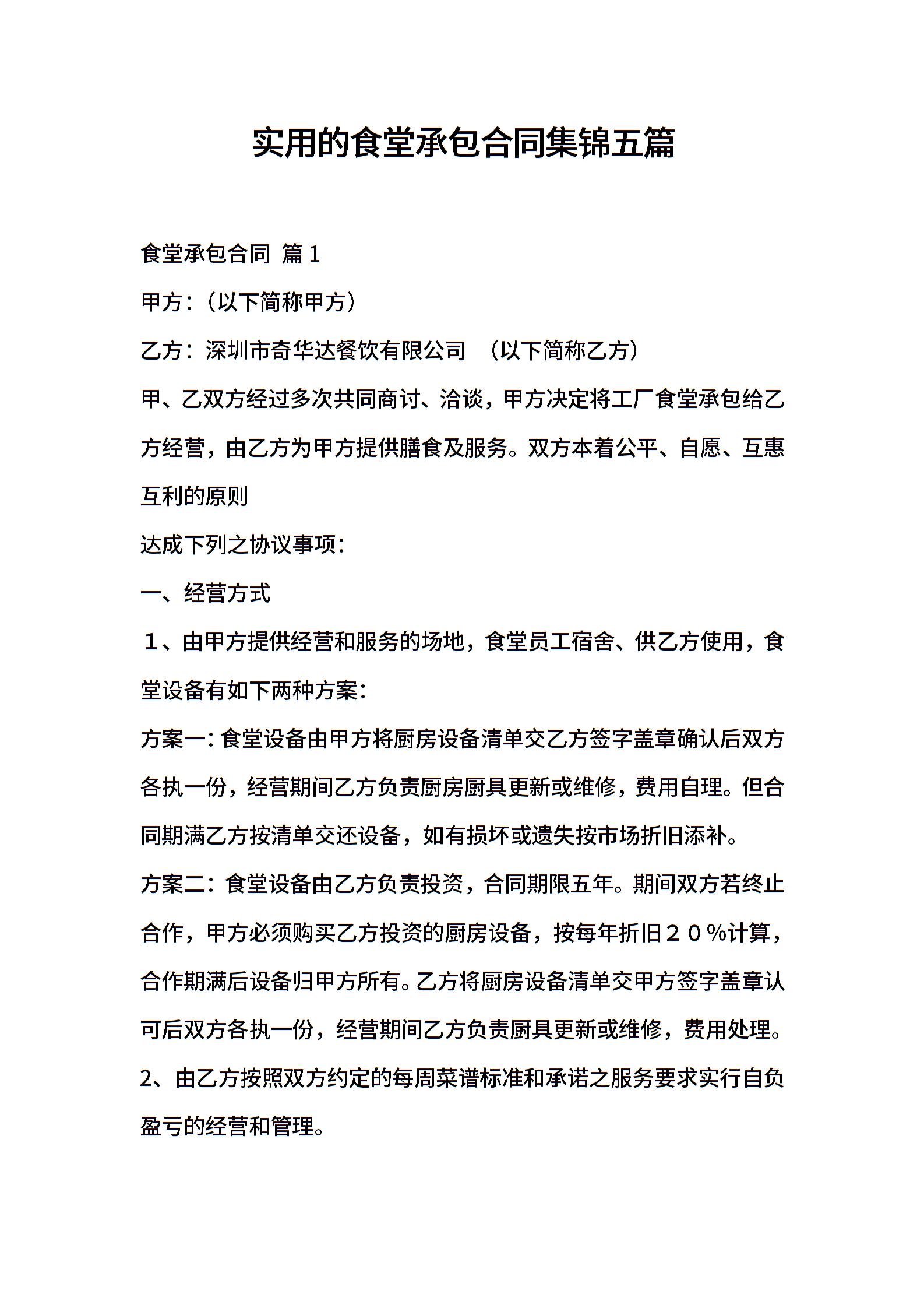 实用的食堂承包合同集锦五篇
