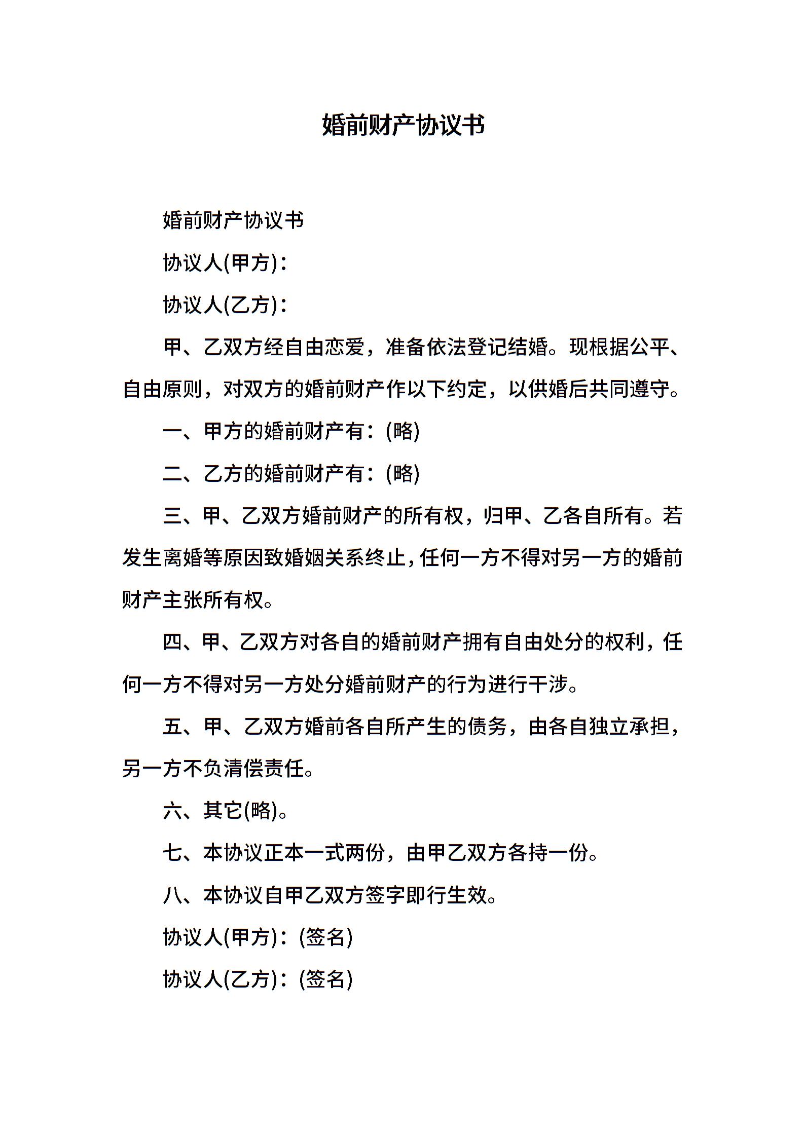 当前位置:量子办公 > 合同模板 > 婚前协议 >