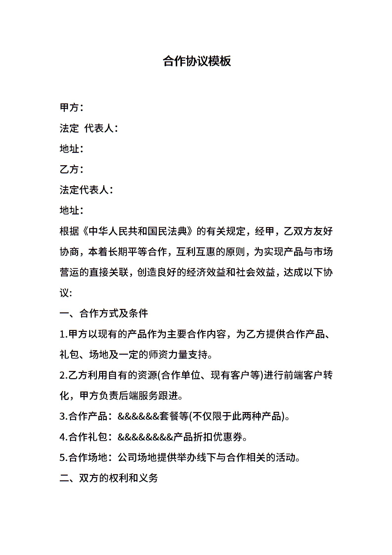 当前位置:量子办公 > 合同模板 > 合作合同 >