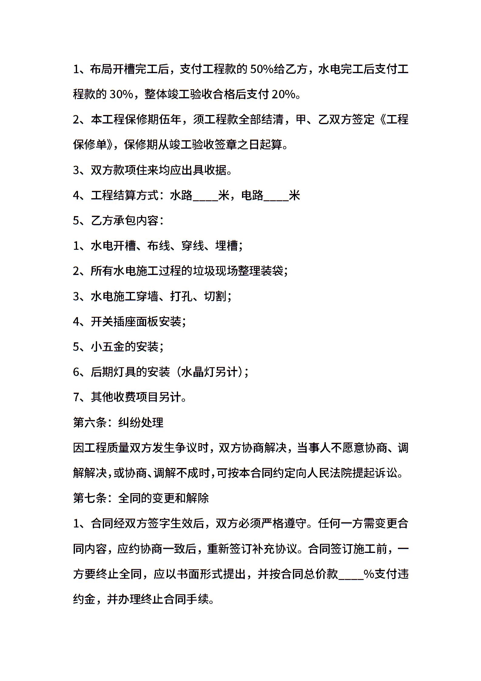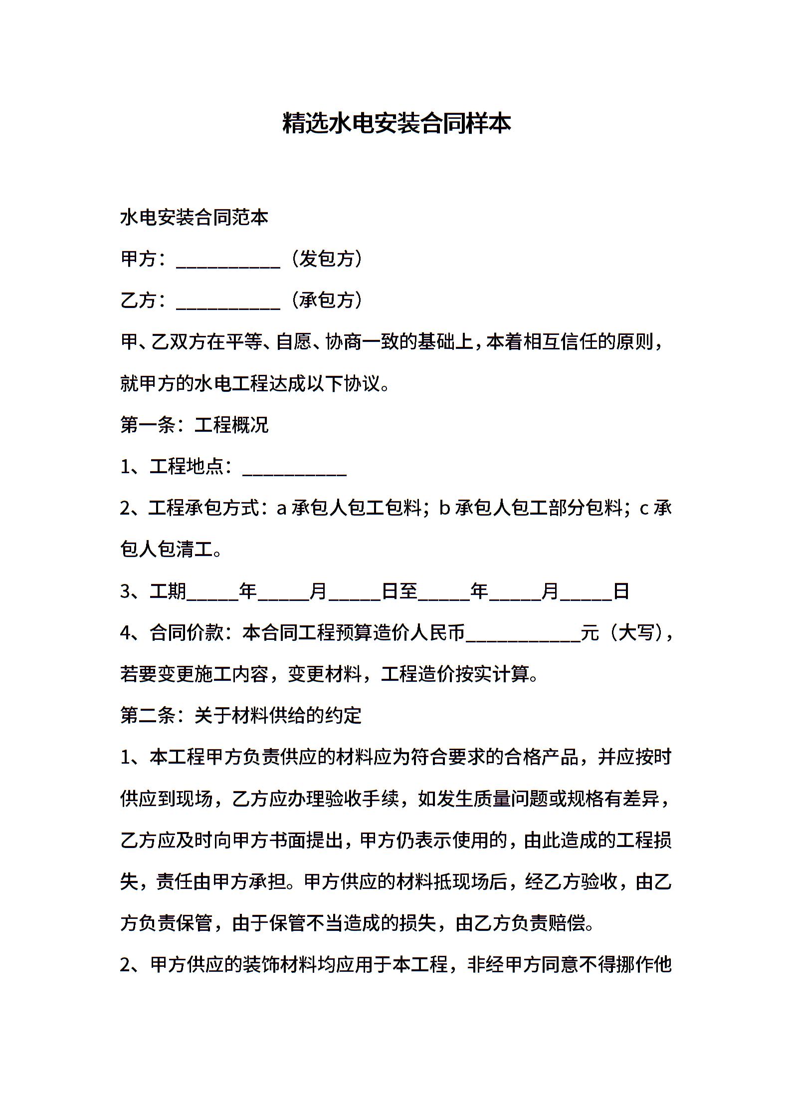 精选水电安装合同样本