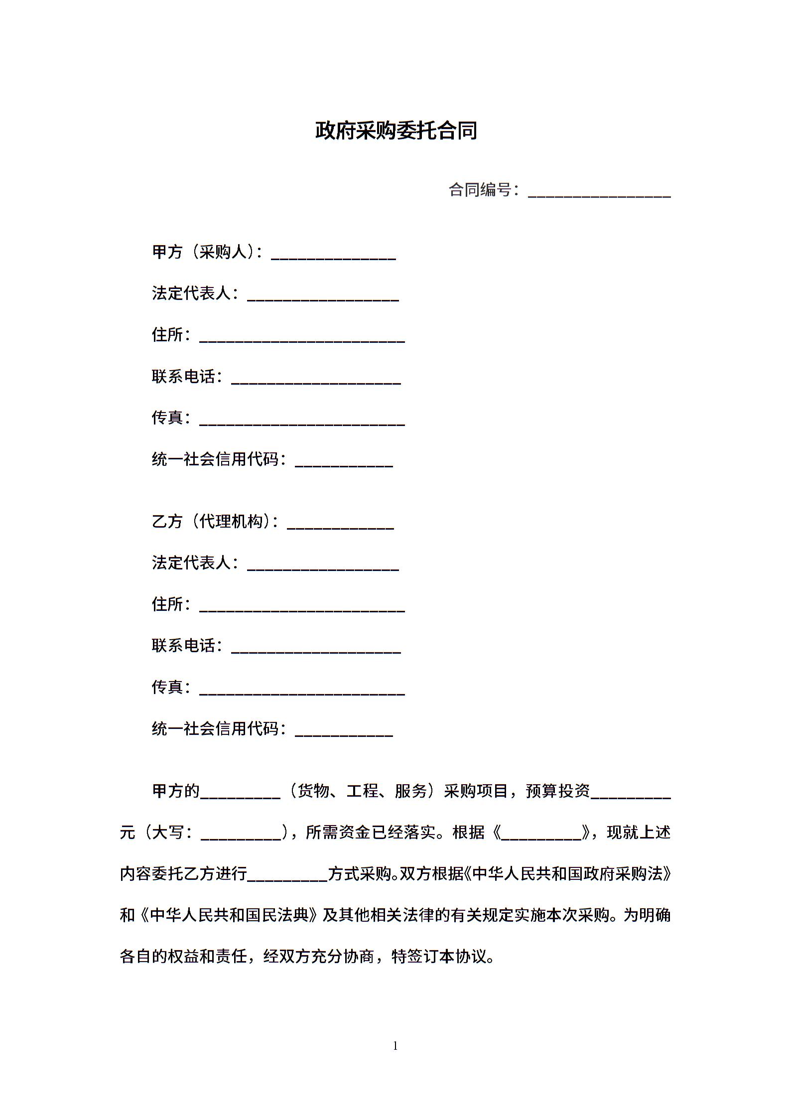 政府采购委托合同