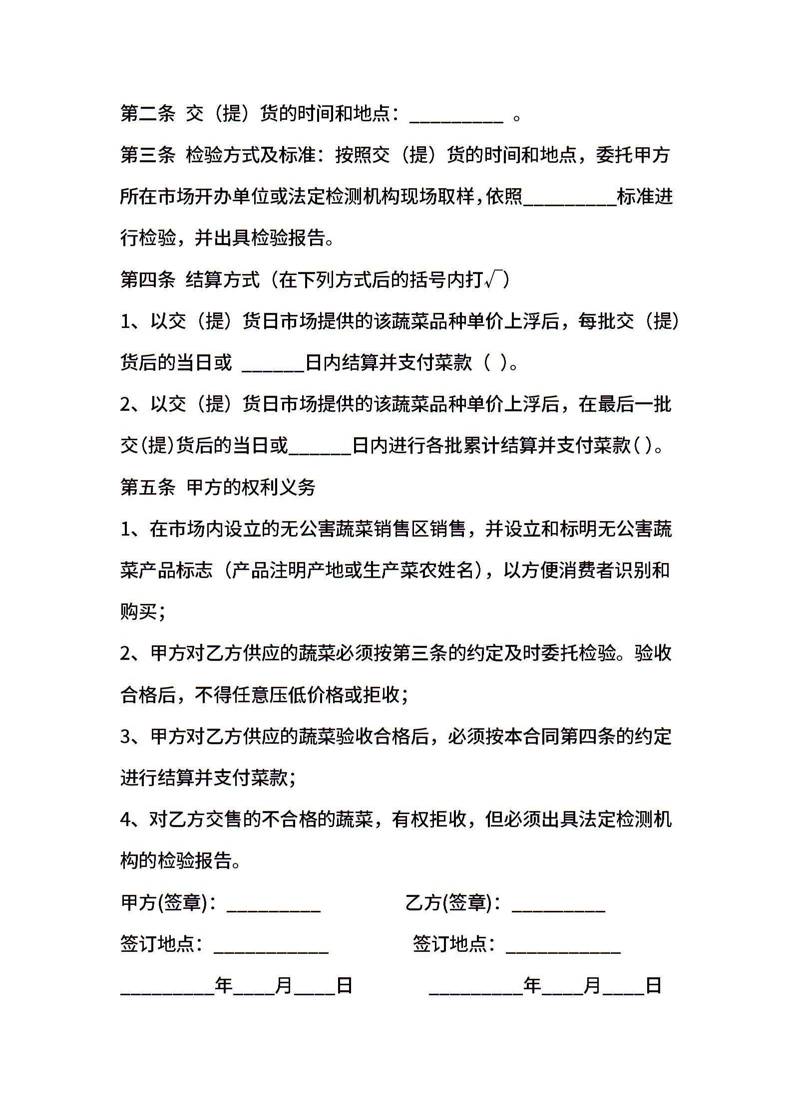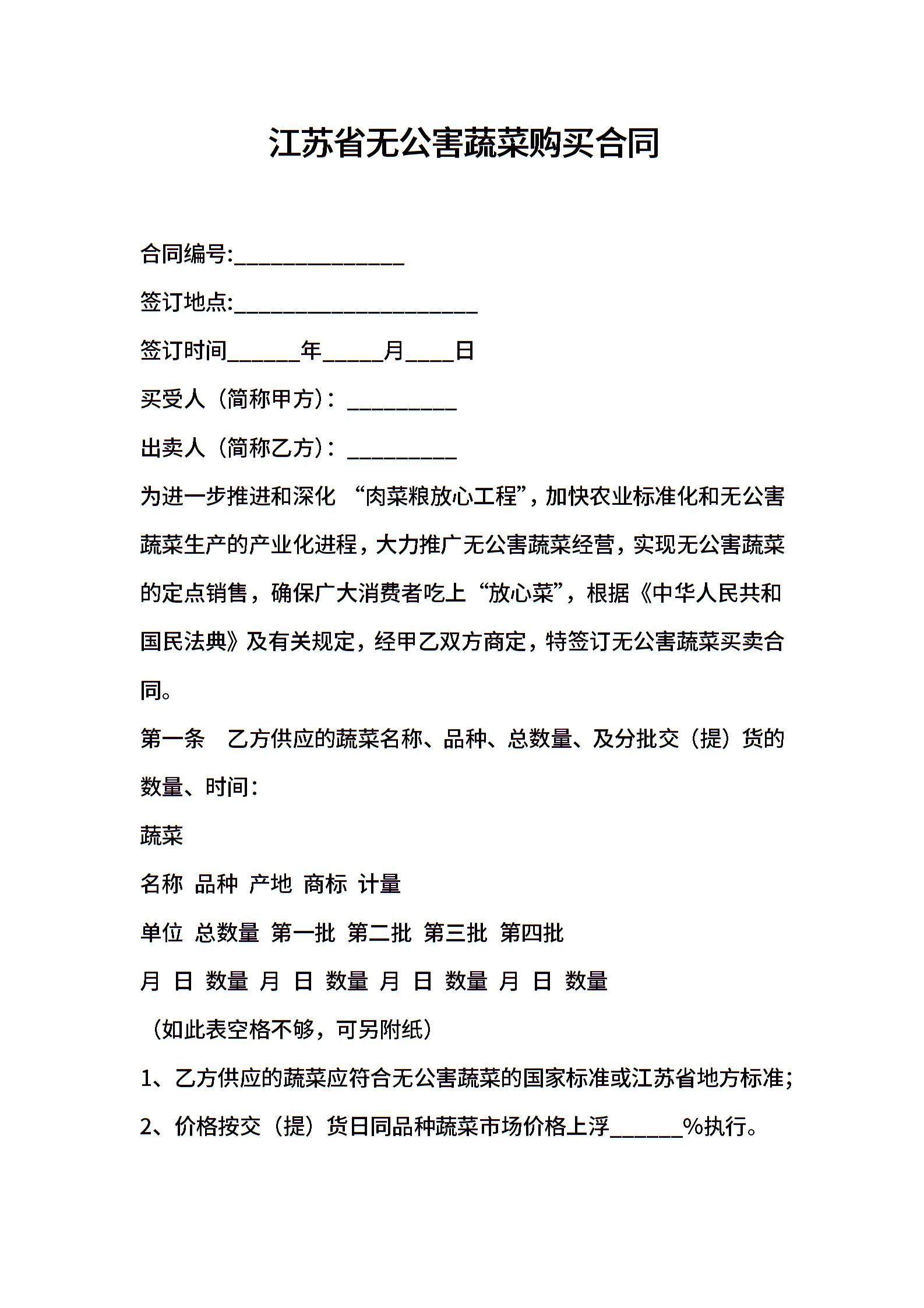江苏省无公害蔬菜购买合同