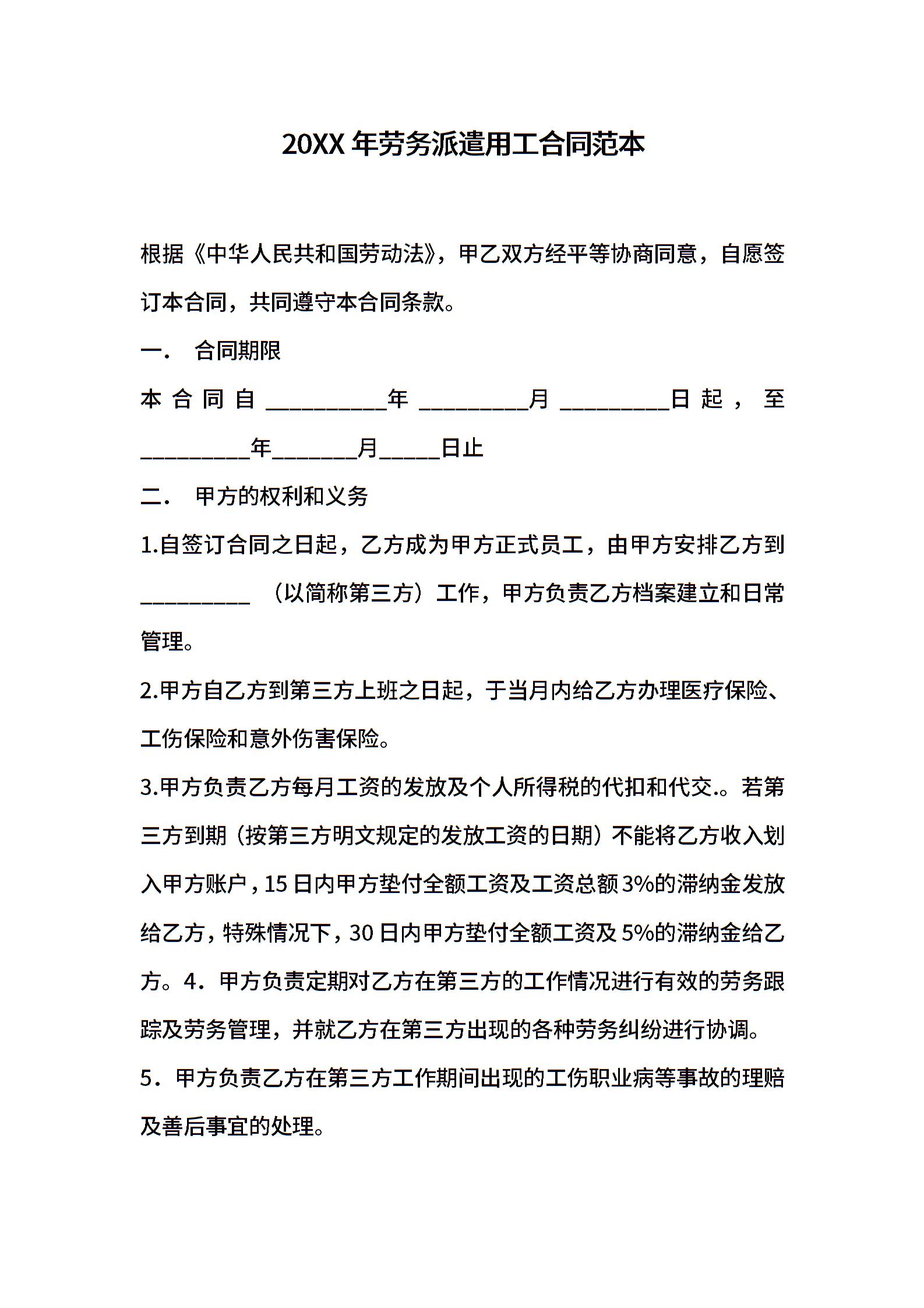 2021年劳务派遣用工合同范本