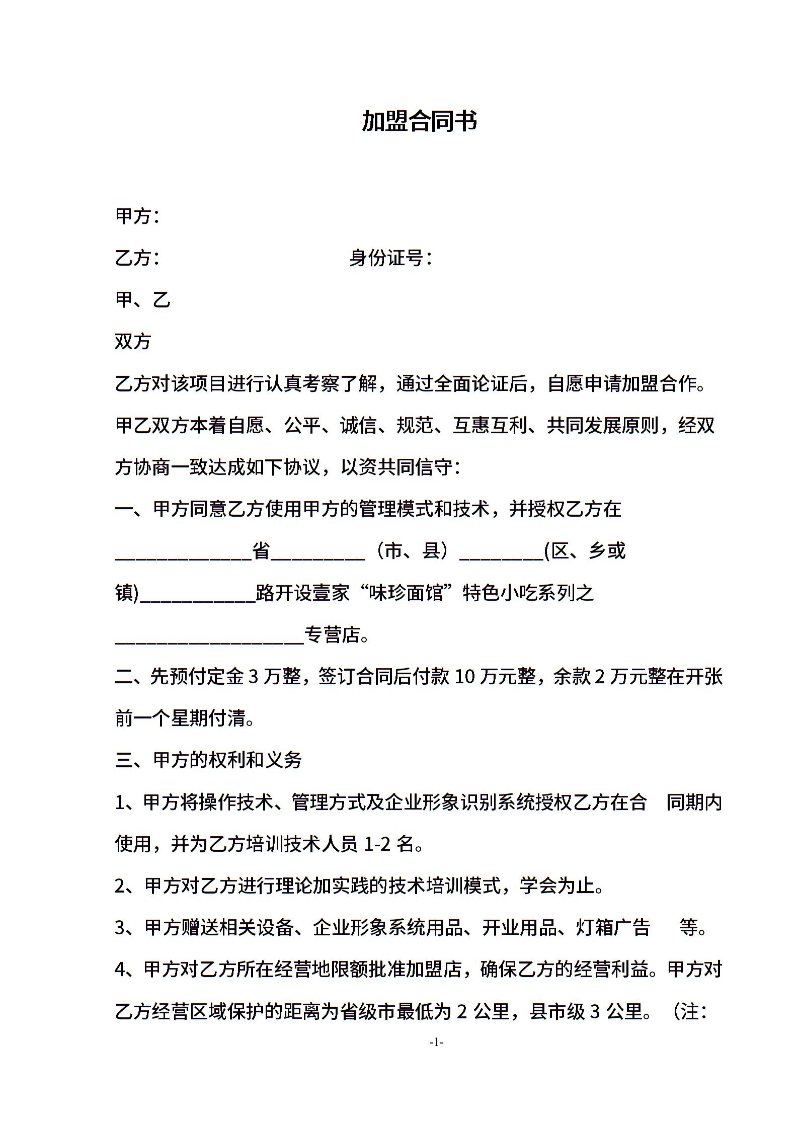 小吃加盟合同书