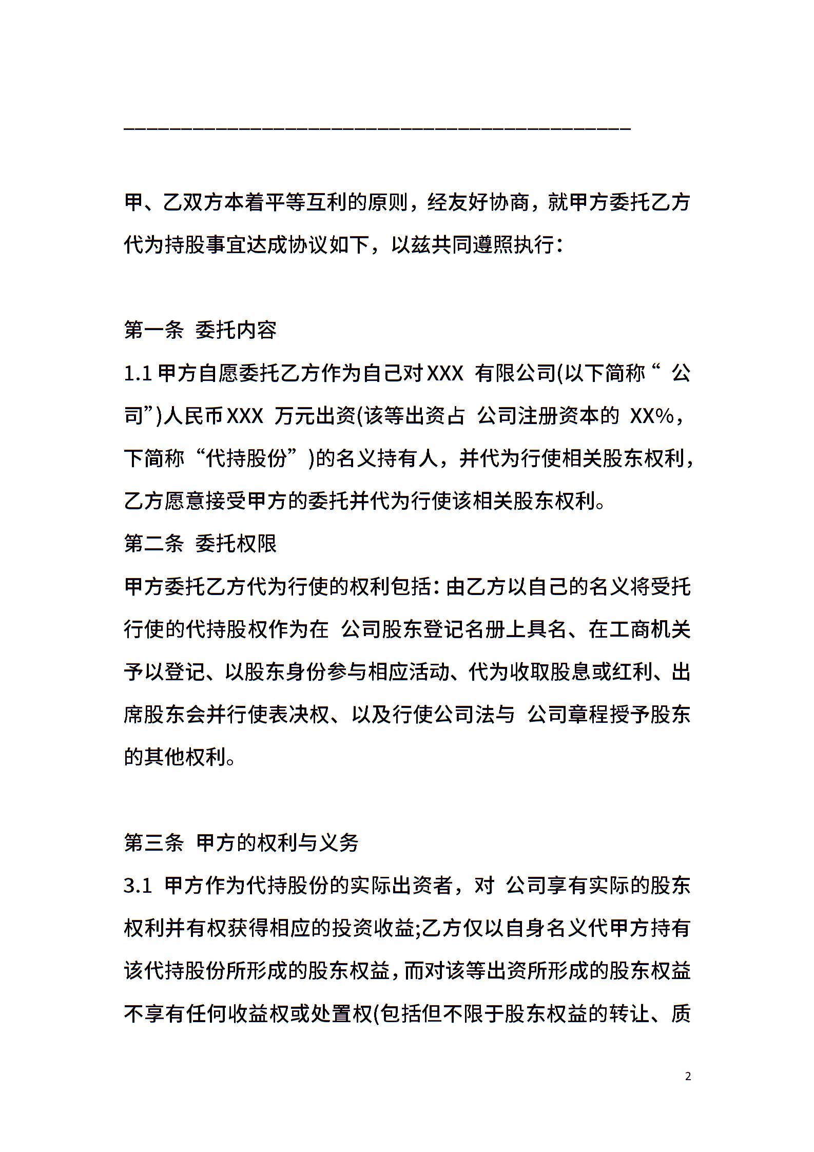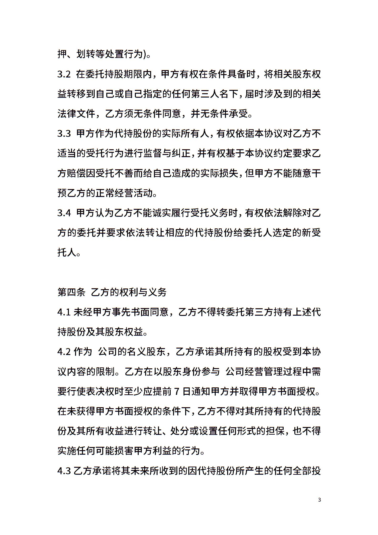 某公司股权代持管理协议合同范本标准版新版