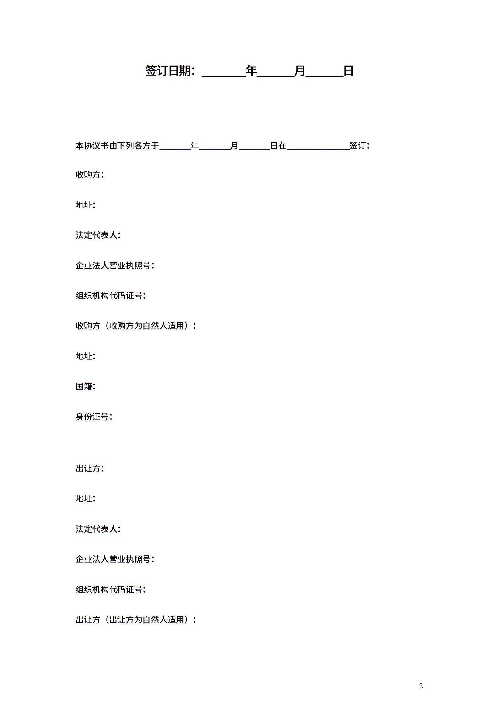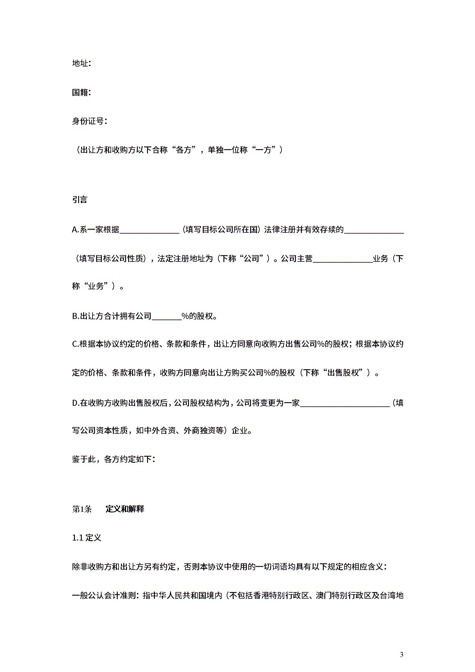 股权收购合同协议范本模板 律师版