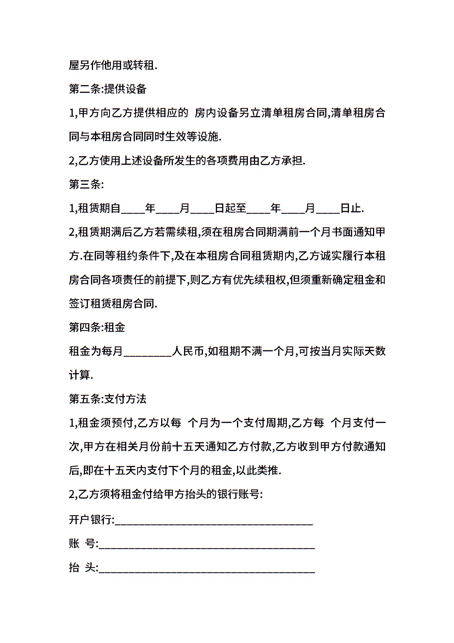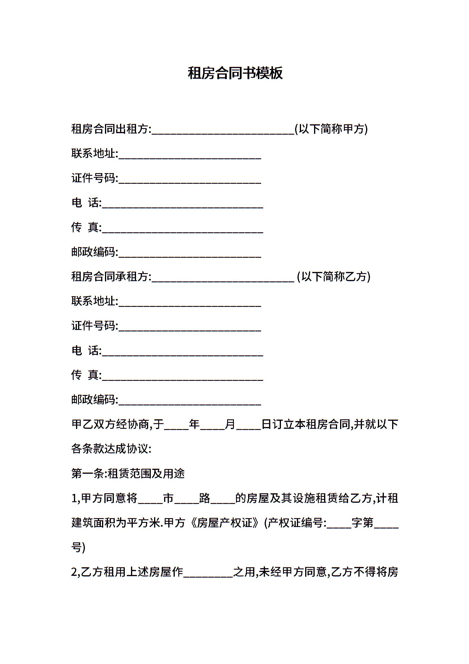 租房合同书模板 (2)