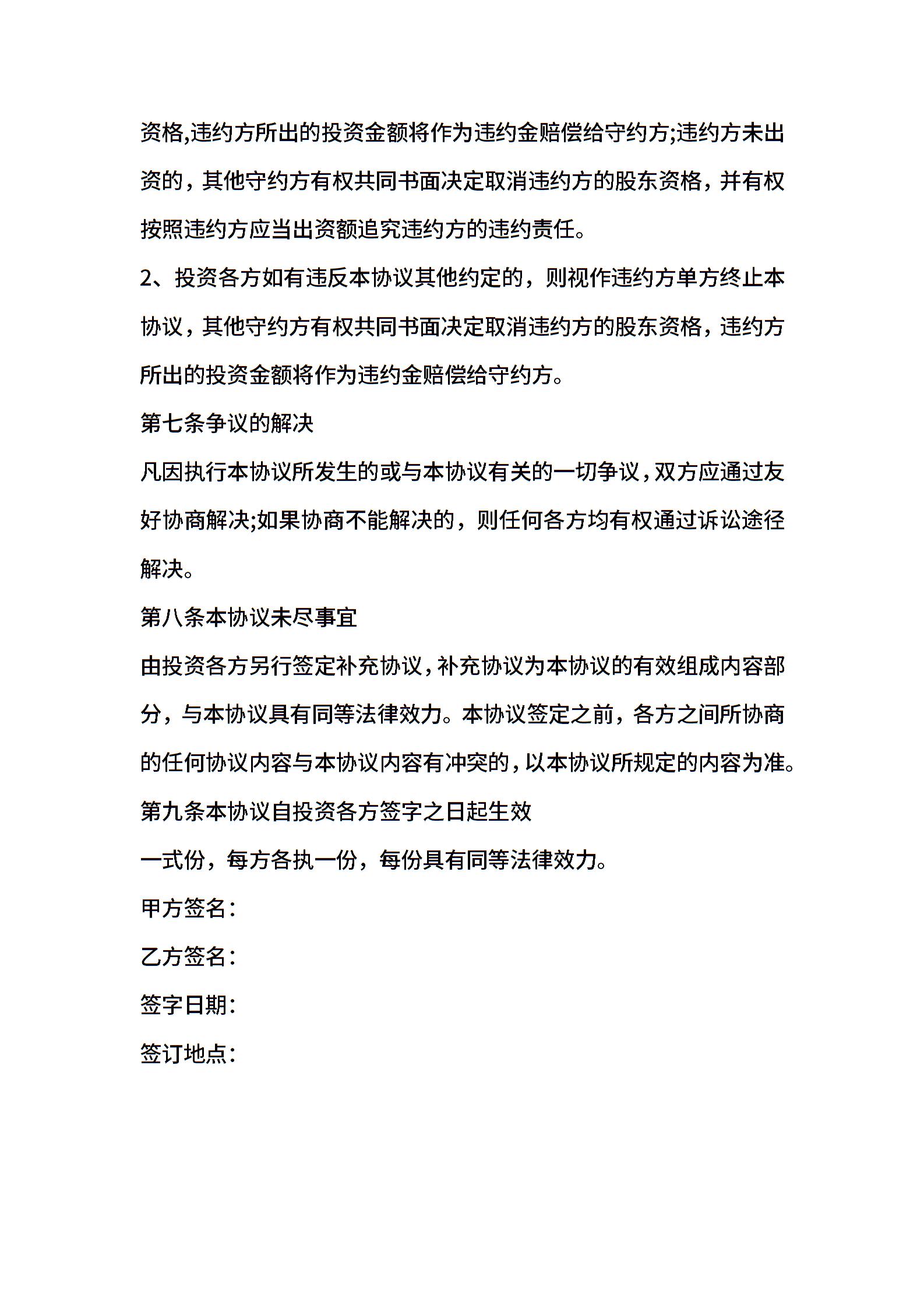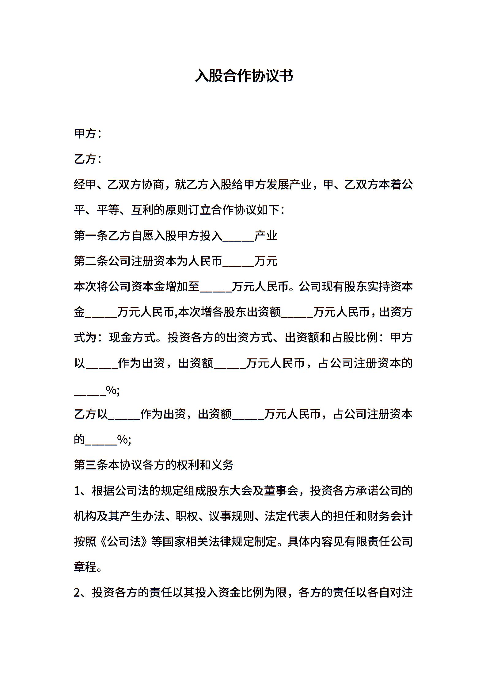 入股合作协议书